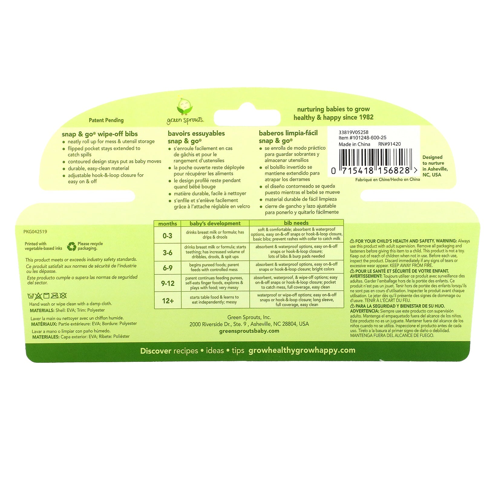 Green Sprouts, Snap & Go Wipe Off Bibs, 9-18 Months, Blue Whales, 3 Pack