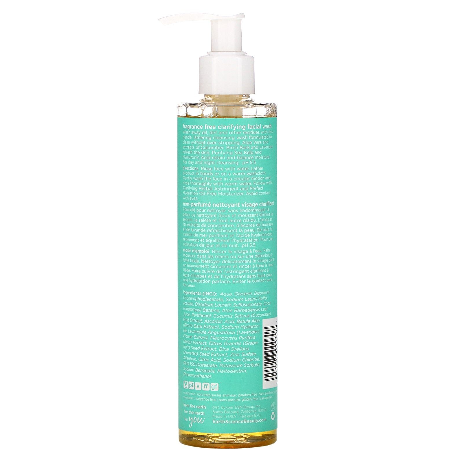 Earth Science, Clarifying Facial Wash, Oily & Combination Skin Types, Fragrance Free, 8 fl oz (237 ml)