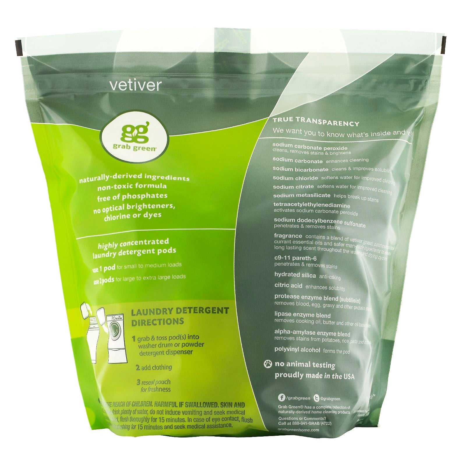 Grab Green, 3 in 1 Laundry Detergent Pods, Vetiver,132 Loads, 5lbs, 4oz (2,376 g)