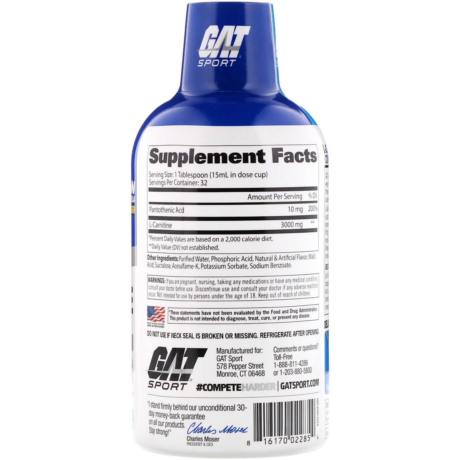 Essentials Helps Convert Fat to Energy Improves Athletic Performance Supports Endurance Exercise Satisfaction Guaranteed - GAT Authentic 32 Servings Dietary Supplement Naturally and Artificially Flavored Convert Fat To Energy! Delicious Tasting! No Artificial Colors No Dairy No Soy No Yeast No Carbs No Sugar GAT Liquid L-Carnitine 3000 is perfect for sport enthusiasts, weightlifters, athletes and anyone trying to improve their fitness and conditioning. It's one of the most versatile supplements athletes can utilize. L-Carnitine helps the body convert food to energy, providing support for endurance exercise (aerobic) and during recovery from high intensity activities such as weightlifting and sprinting (anaerobic). For Carnitine to be most effective at fat burning, eating adequate levels of Omega-3 fatty acids may help athletic performance improvement when combined with carbohydrates. Great Absorption with Pantothenic Acid Our formula is further enhanced with a high potency dosage of Pantothenic Acid (Vitamin B5). Once Pantothenic Acid is...
