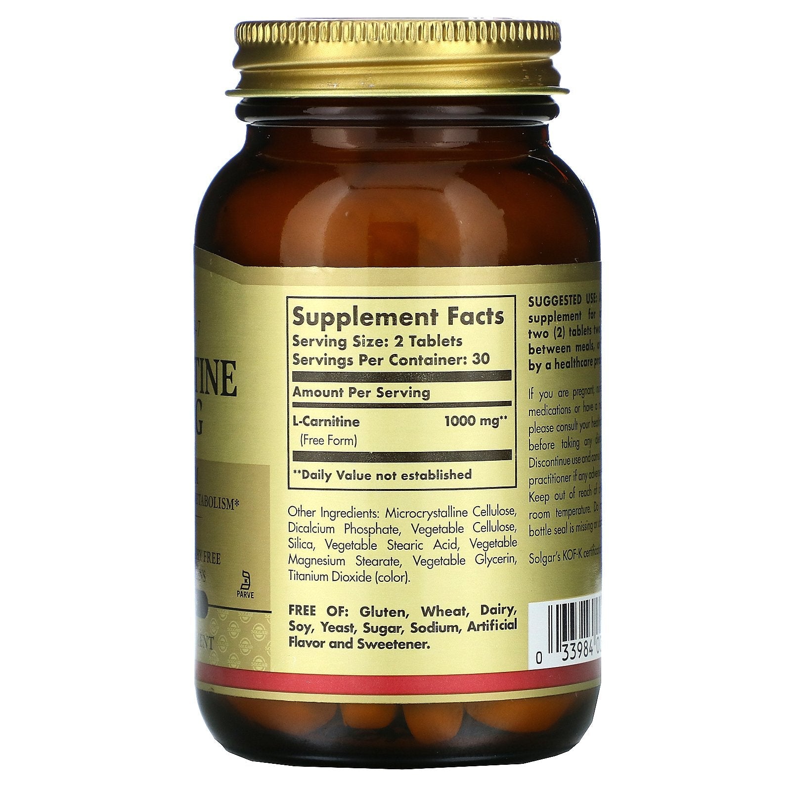 Solgar, L-Carnitine, Free Form, 500 mg, 60 Tablets