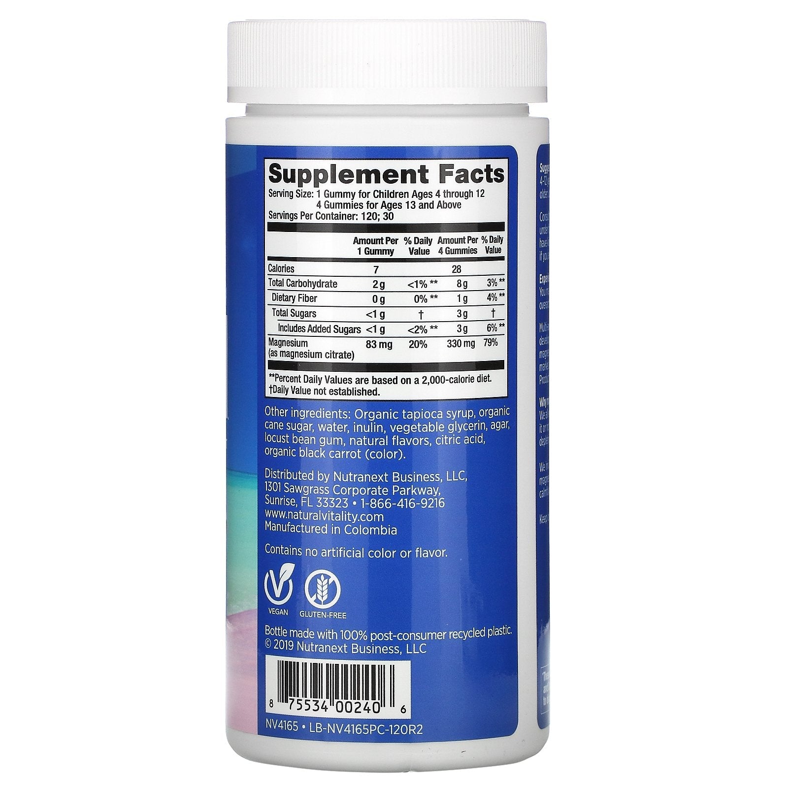 A Magnesium Supplement With Other Natural Flavors Contains No Artificial Color or Flavor Vegan Gluten-Free Experience CALM : You may notice muscles relaxing and an overarching sense of calmfulness. Multi-award-winning Natural Vitality CALM ™ , developed by Peter Gillham, is the best-selling magnesium supplement in the natural products market. (April 2019 Volume sales data for Natural Products market as defined by SPINS). Why magnesium? We encourage stress daily whether we realize it or not, and our bodies can respond by depleting our magnesium levels. We invite you to help replenish your body's magnesium levels and enjoy the wave of calmfulness.Sugg. Use4-12 years: one gummy per day; 13 years and older: up to four gummies daily.Other IngredientsOrganic tapioca syrup, organic cane sugar, water, inulin, vegetable glycerin, agar, locust bean gum, natural flavors, citric acid, organic black carrot (color).Supplement FactsServing Size: 1 Gummy for Children Ages 4 through 12 4 Gummies for...