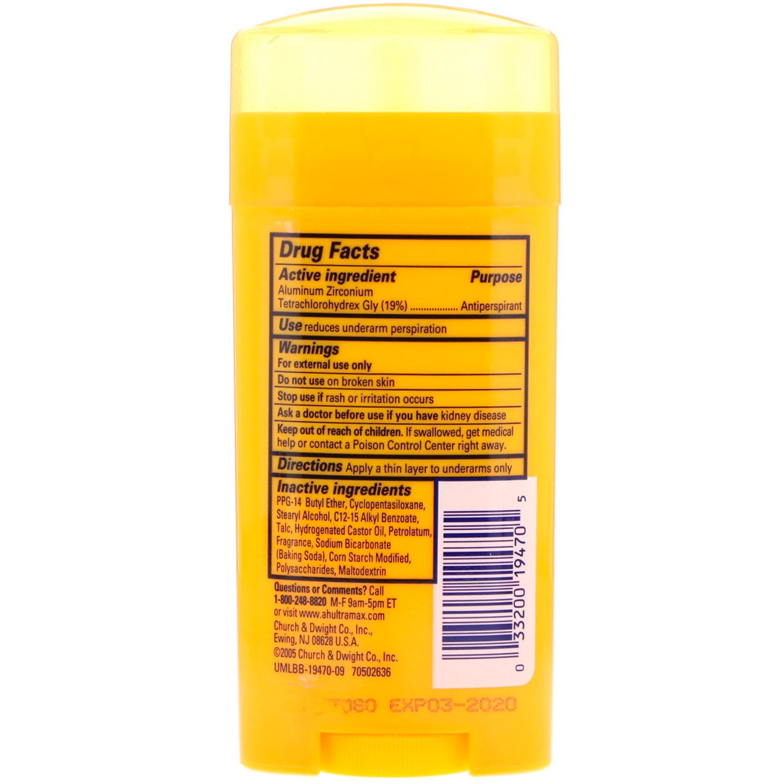 Arm & Hammer, UltraMax, Solid Antiperspirant Deodorant, for Women, Powder Fresh, 2.6 oz (73 g)