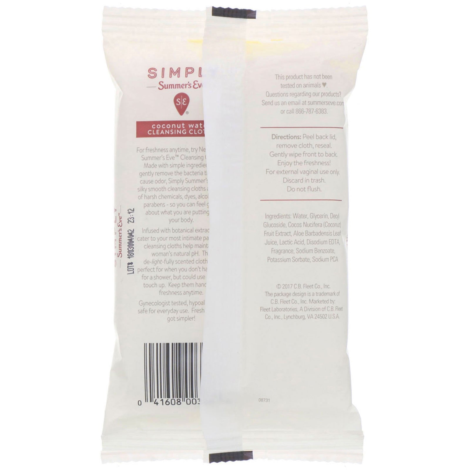 Helps Maintain a Natural pH Free from Harsh Chemicals Simple Ingredients This Product Has Not Been Tested on Animals For freshness anytime, try New Simply Summer's Eve Cleansing Cloths. Made with simple ingredients to gently remove the bacteria that can c