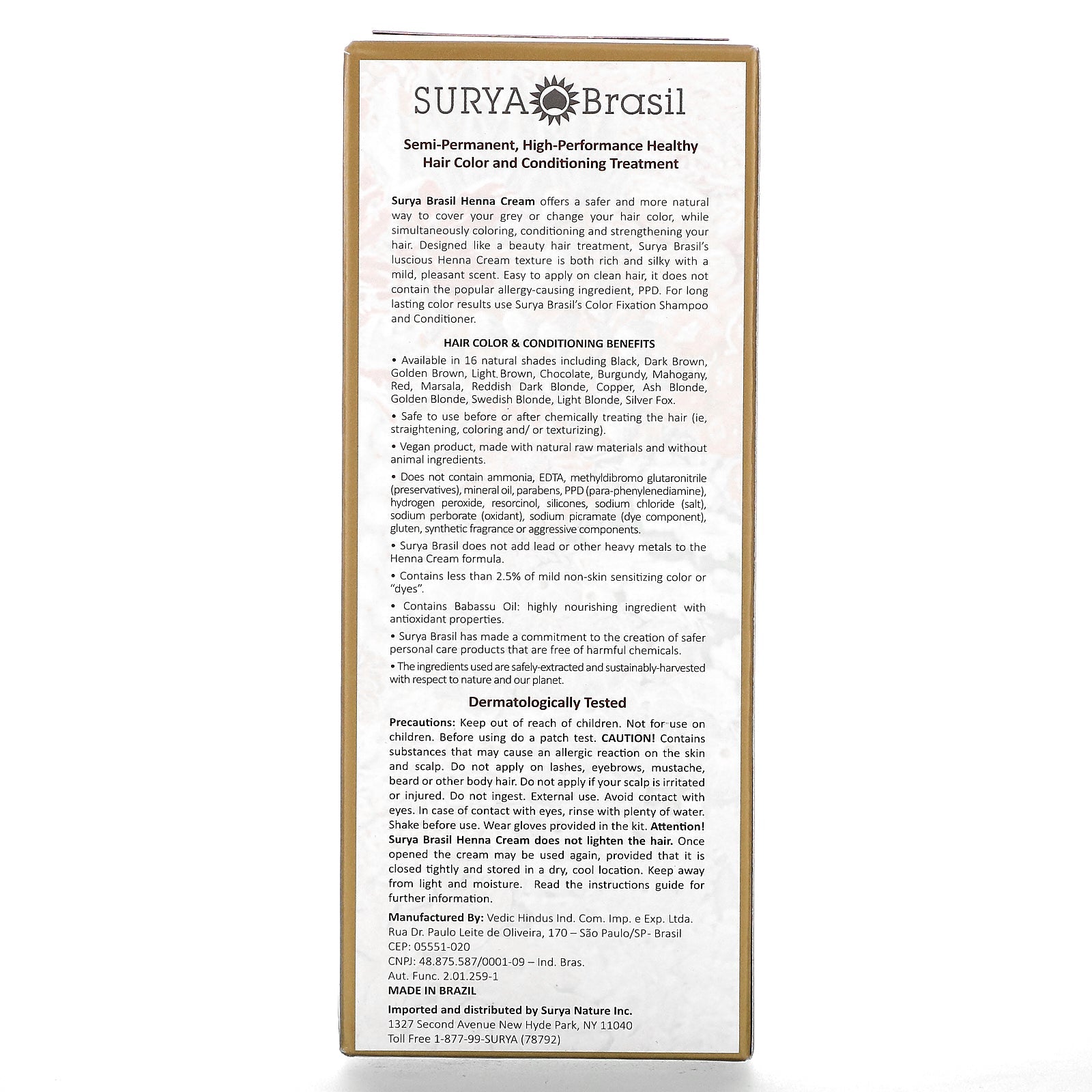 With Plant Extracts Semi-Permanent High-Performance Healthy Hair Color for Grey Coverage Dermatologically Tested Cruelty Free Certified Vegan Made with Natural Preservatives Does NOT contain: PPD Ammonia EDTA GMOs Gluten Hydrogen Peroxide Mineral Oil Para