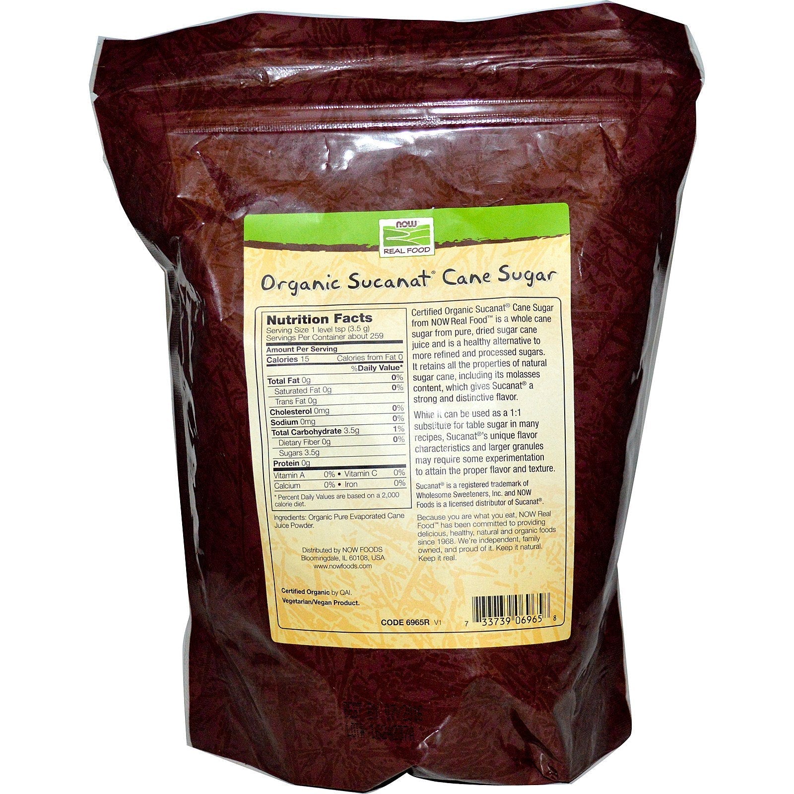 Pure. Natural. Real Pure Evaporated Cane Syrup Powder Excellent Substitute for White and Brown Sugar USDA Naturally Sweet Certified by QAI Vegetarian/Vegan Certified Sucanat® Cane Sugar from NOW Real Food™ is a whole cane sugar from pure, dried sugar cane juice and is a healthy alternative to more refined all the properties of natural sugar cane, including its molasses content, which gives Sucanat a strong distinctive flavor. While it can be used as a 1:1 substitute for table sugar in many recipes, Sucanat®'s unique flavor characteristics and larger granules may require some experimentation to attain the proper flavor and texture. Because you are what you eat, NOW Real Food has been committed to providing delicious, healthy, natural and foods since 1968. We're independent, family owned, and proud of its. Keep it natural. Keep it real.Sugg. UseSucanat is a pure evaporated cane juice powder that can be used as 1:1 replacement...