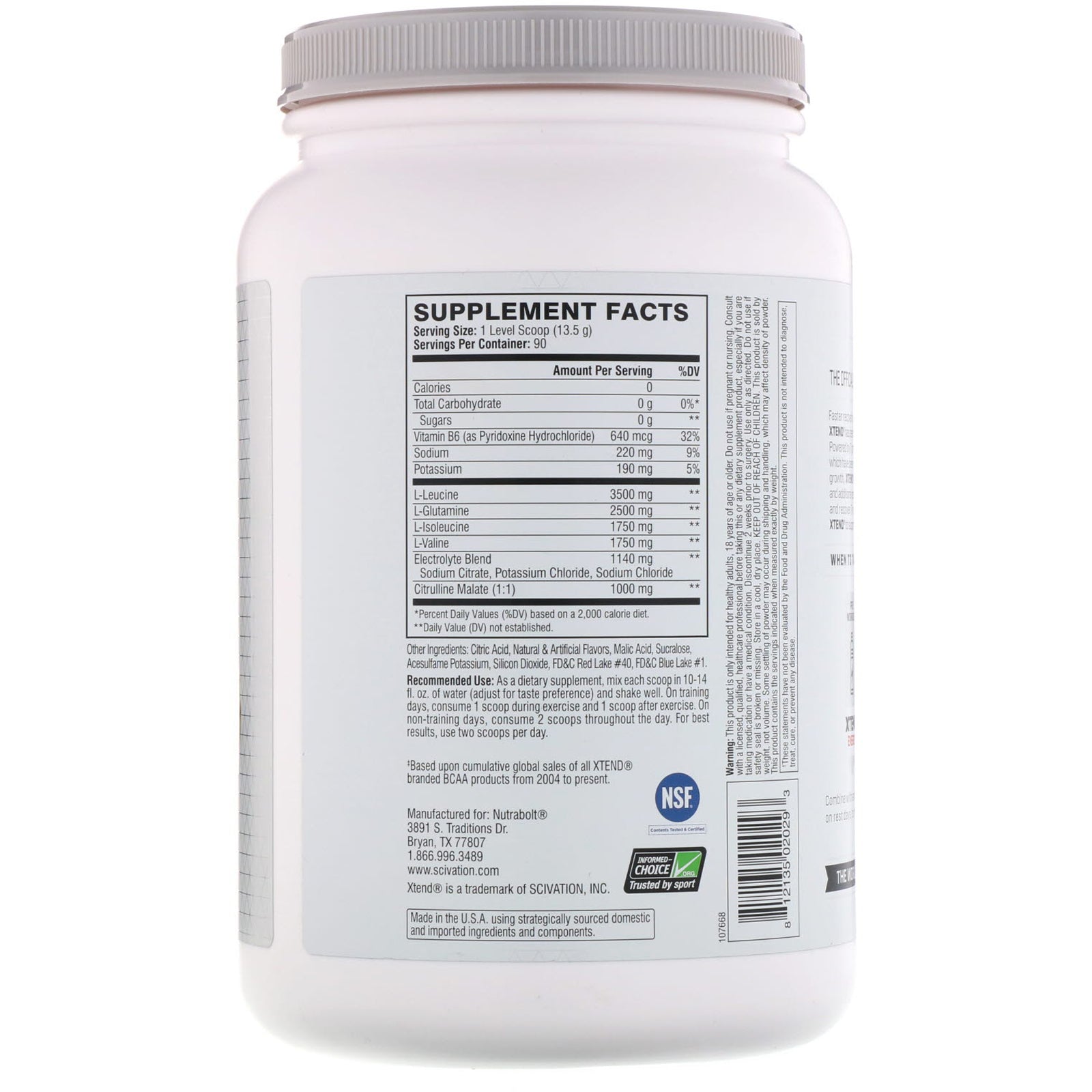 7 g BCAA* Muscle Recovery + Electrolytes Natural & Artificially Flavored 0 Calories* 0 g Carb* 0 g Sugar* 90 Servings Dietary Supplement NSF - Contents Tested & Certified Informed-Choice.Org - Trusted by Sport The World's #1 BCAA Brand‡ The Official Recovery Brand of Champions. Faster recovery is the key to better results. For over 10 years Xtend has been making the best recovery products in the world. Powered by 7 grams of branched-chain amino acids (BCAAs), which have been clinically shown to support muscle recovery and growth, Xtend Original also contains hydrating electrolytes and additional performance ingredients to help you refuel, repair, and recover. Try all the sugar-free, mouthwatering flavors of Xtend to support your fitness goals. When To Take XTEND For Best Results: Pre Workout - Xtend Energy Intra Workout - Xtend The Original Post Workout - Xtend Pro Combine with any Xtend branded product every day, even on rest days, to help maximize your recovery. *Per Serving ‡Based upon cumulative global sales of all Xtend branded BCAA products from 2004 to present.