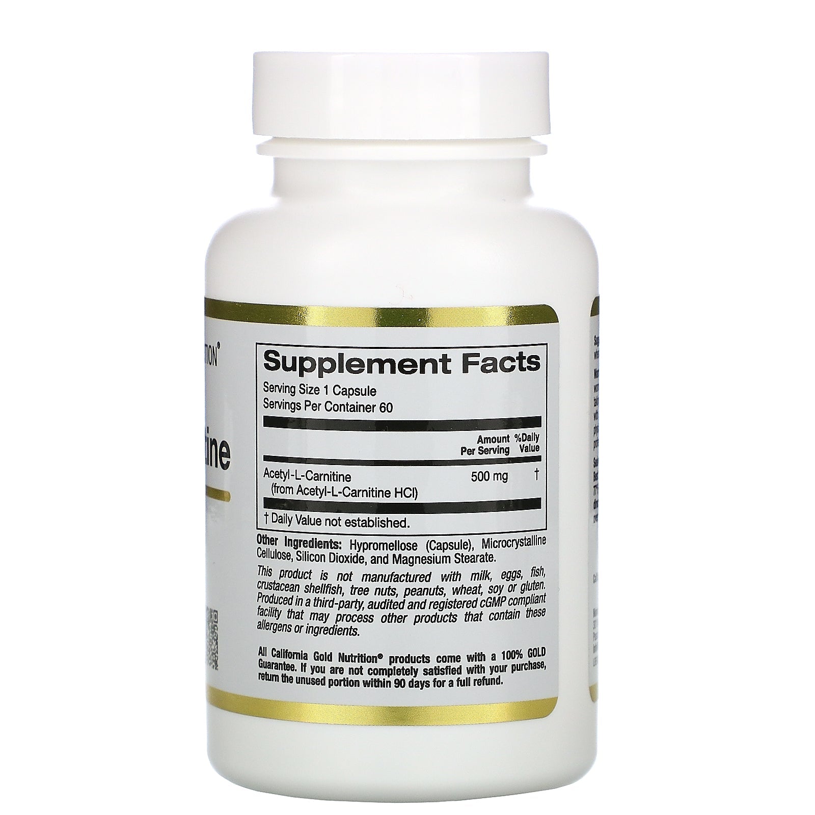 California Gold Nutrition, Acetyl-L-Carnitine, 500 mg, 60 Veggie Capsules