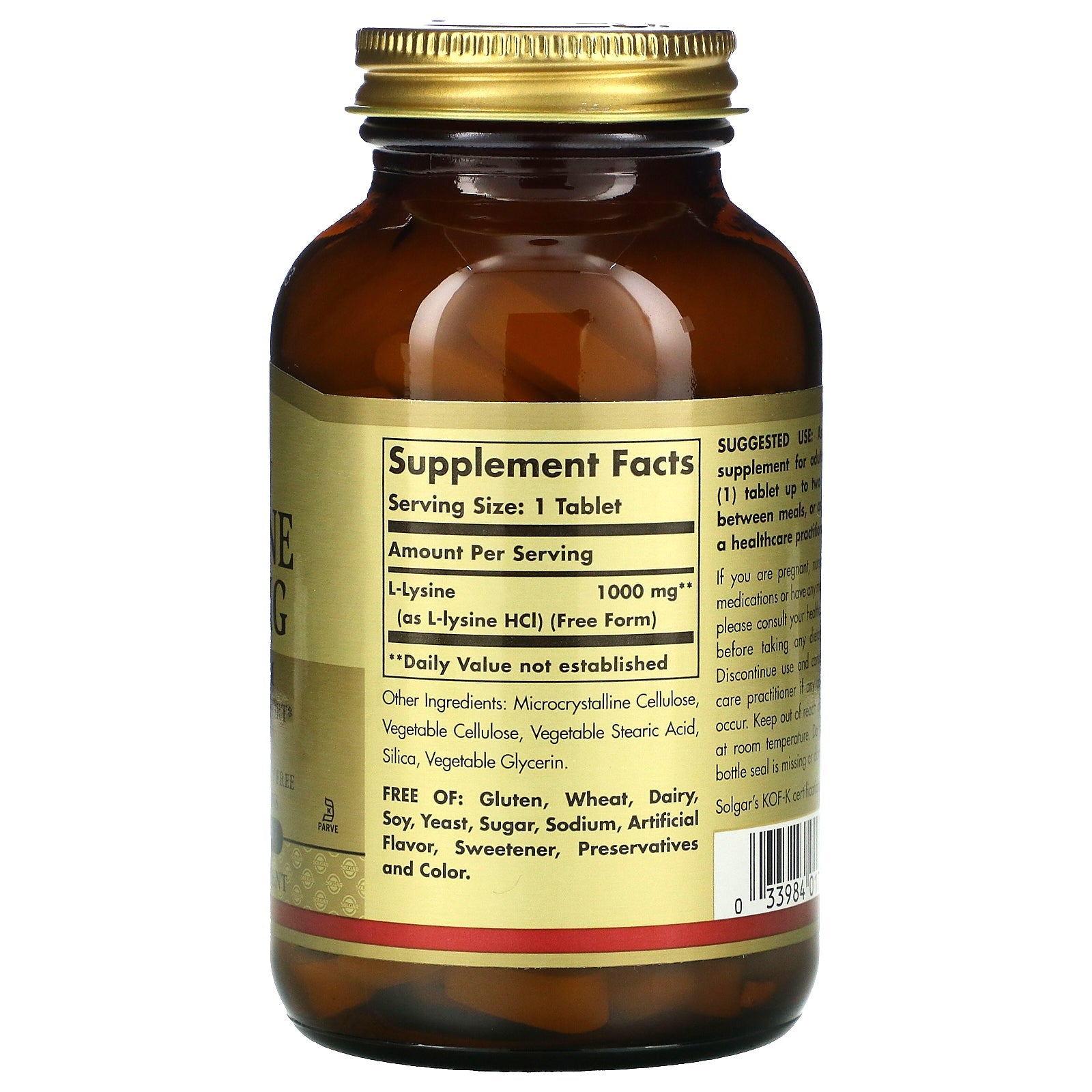 Solgar, L-Lysine, Free Form, 1,000 mg, 100 Tablets