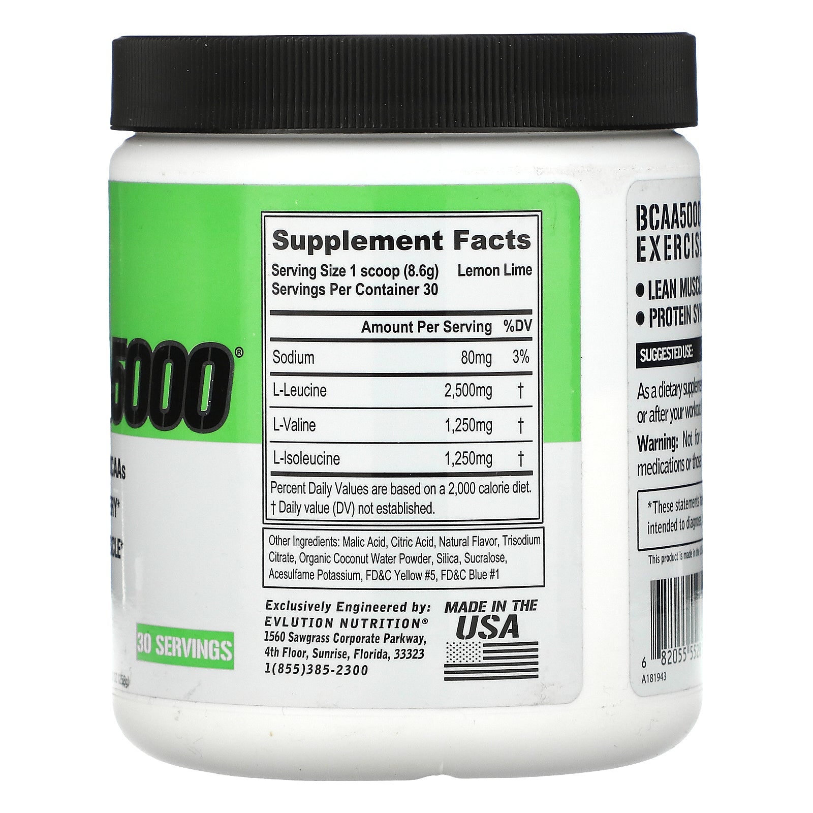 EVLution Nutrition, Ultra Premium BCAA5000, Lemon Lime, 9.1 oz (258 g)