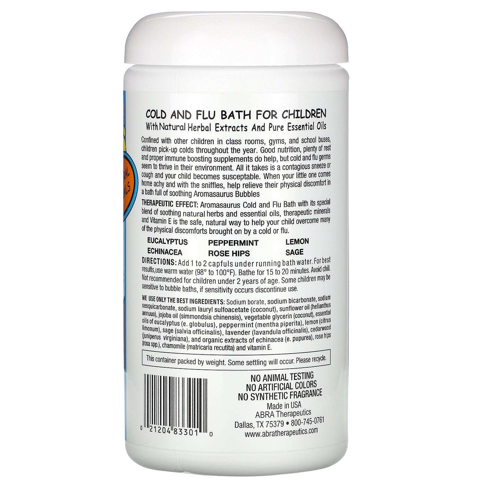Abra Therapeutics, Aromasaurus Cold & Flu, Aroma Therapy Bubble Bath, 16 oz (453 g)
