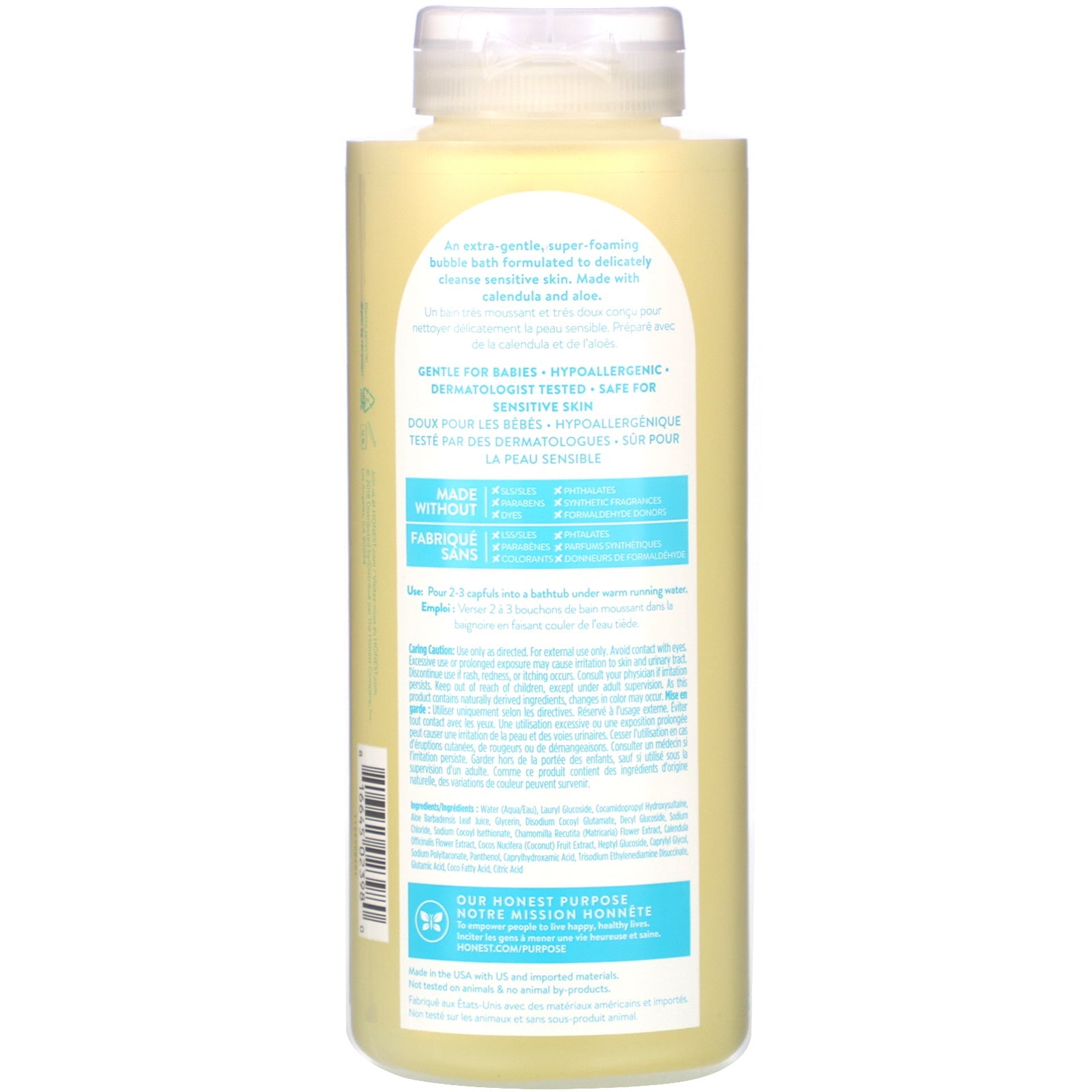 Naturally Derived Ingredients Tear Free Gentle for Babies Hypoallergenic Dermatologist Tested Safe for Sensitive Skin Not Tested on Animals An extra-gentle, super-foaming bubble bath formulated to delicately cleanse sensitive skin. Made with calendula and