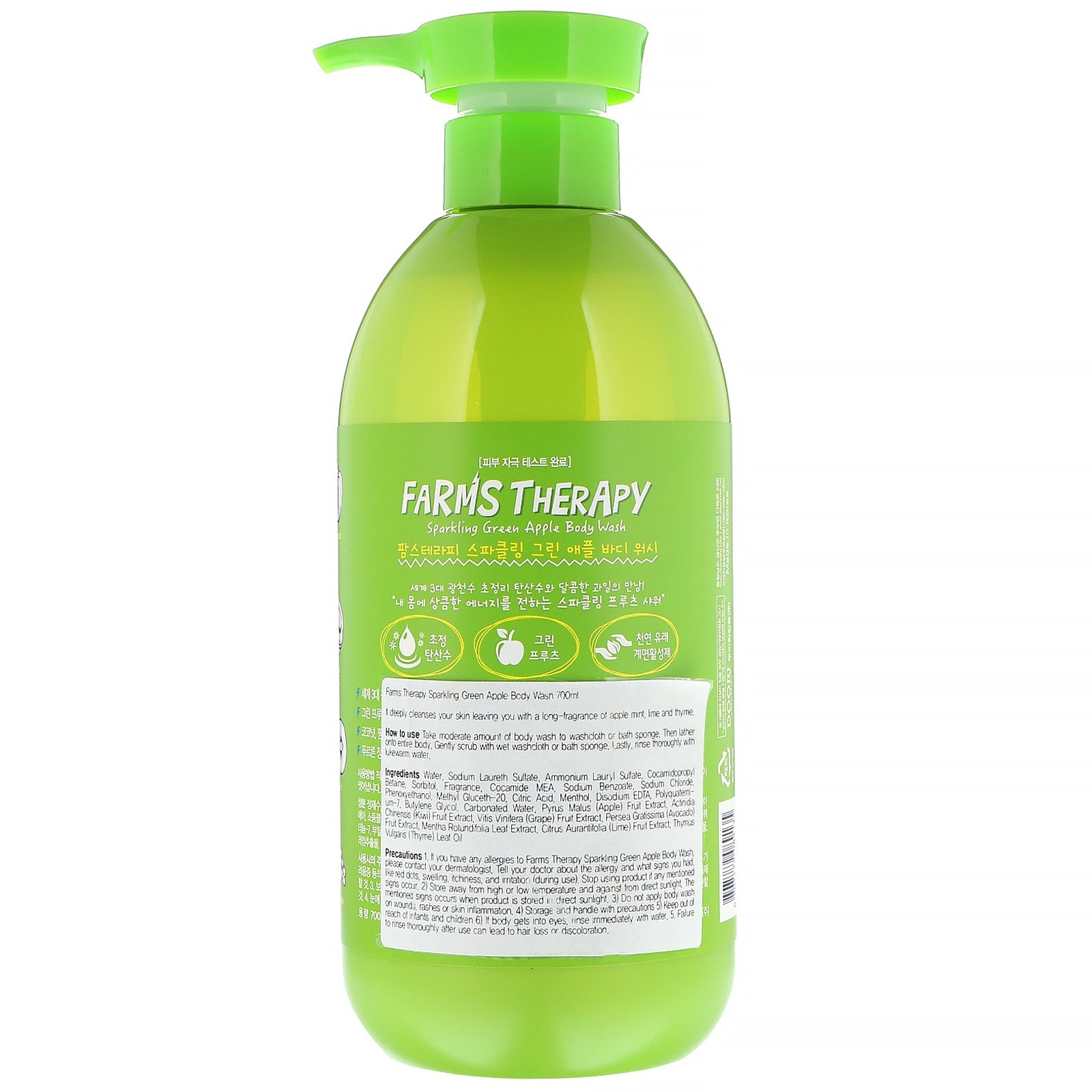 Green Fruit Recipe for Soothing & Moisture Unripe Apple + Avocado + Kiwi Fruit + Green Grape It deeply cleanses your skin leaving you with a long-fragrance of apple mint, lime and thyme.Sugg. UseTake moderate amount of body wash to washcloth