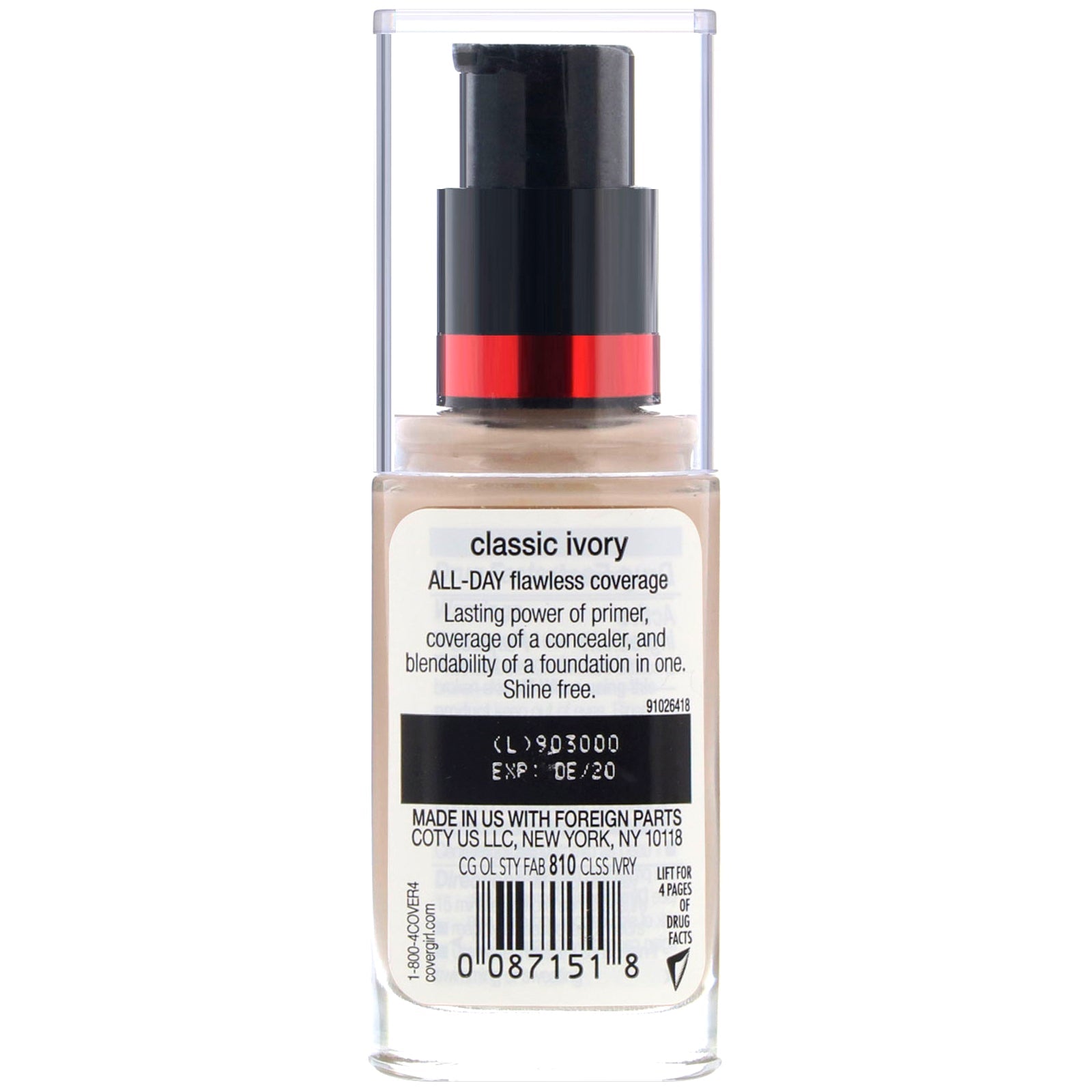 Covergirl, Outlast All-Day Stay Fabulous, 3-in-1 Foundation, 810 Classic Ivory, 1 fl oz (30 ml)