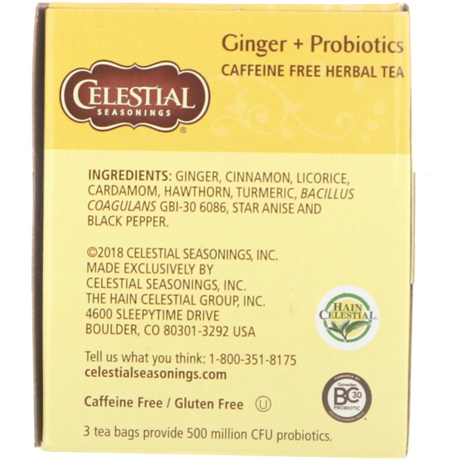 Celestial Seasonings, Herbal Tea, Ginger + Probiotics, Caffeine Free, 20 Tea Bags, 1.1 oz (31 g)