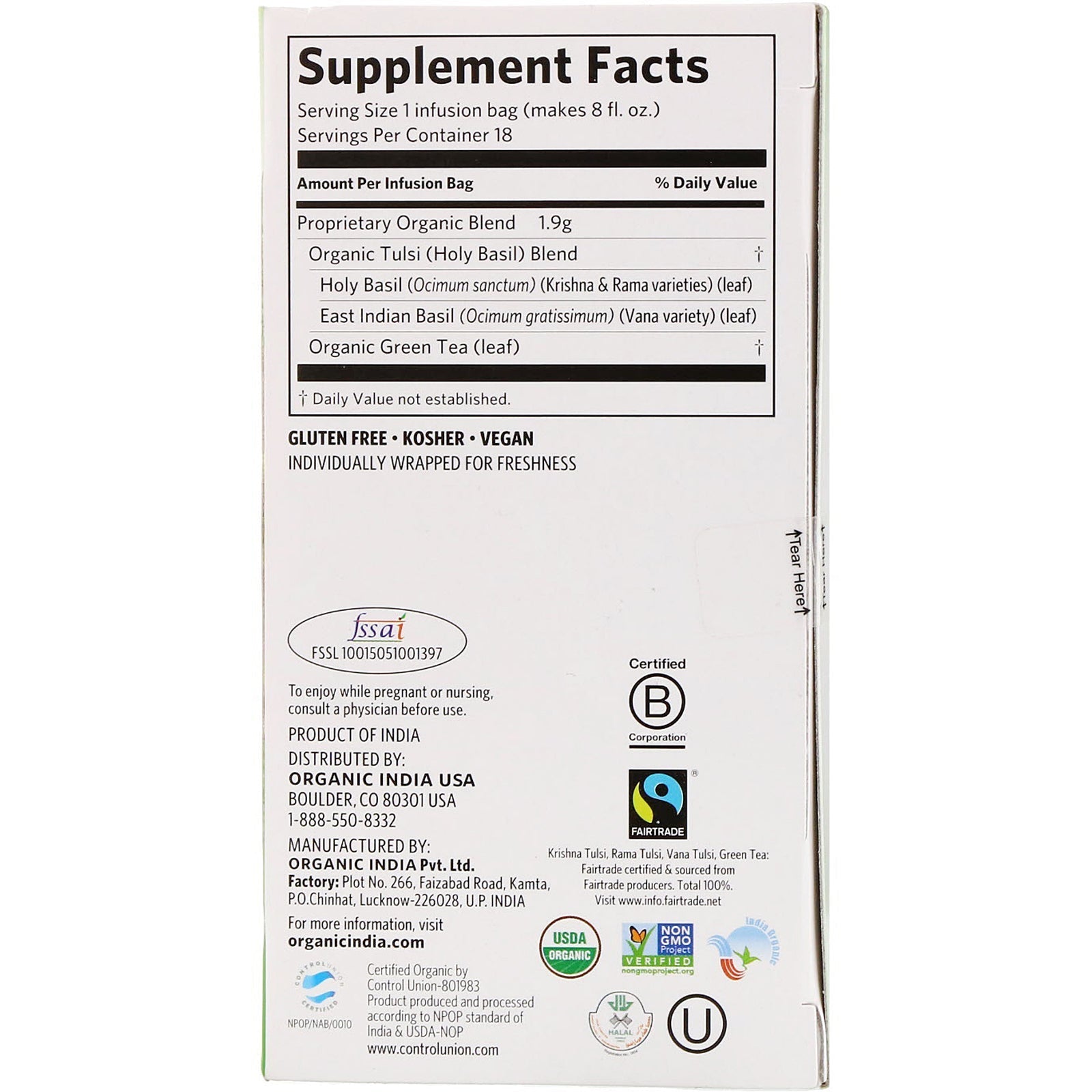 India, Tulsi Tea, Green, 18 Infusion Bags, 1.21 oz (34.2 g)