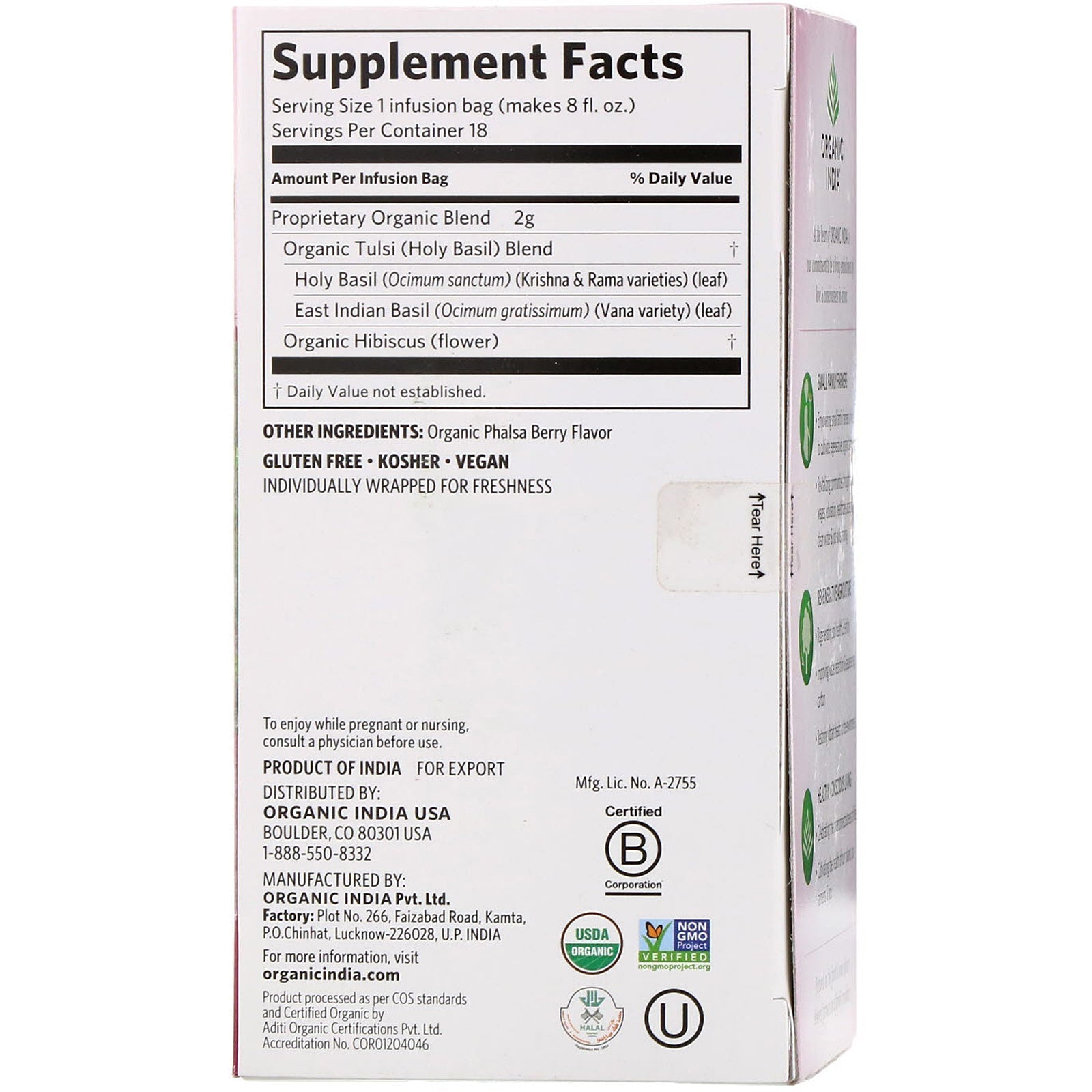 India, Tulsi Tea, Hibiscus, Caffeine-Free, 18 Infusion Bags, 1.27 oz (36 g)