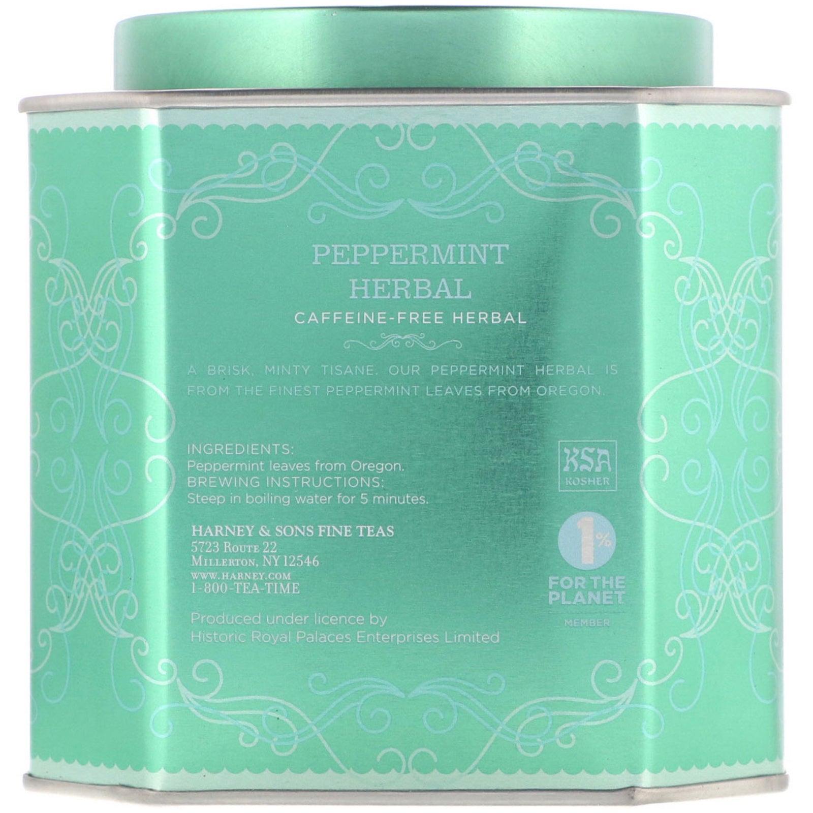 Fine Teas Master Tea Blenders Historic Royal Palaces Kosher A brisk, minty tisane, our peppermint herbal is from the finest peppermint leaves from Oregon.Sugg. UseBrewing instructions: Steep in boiling water for 5 minutes.Other Ingredients