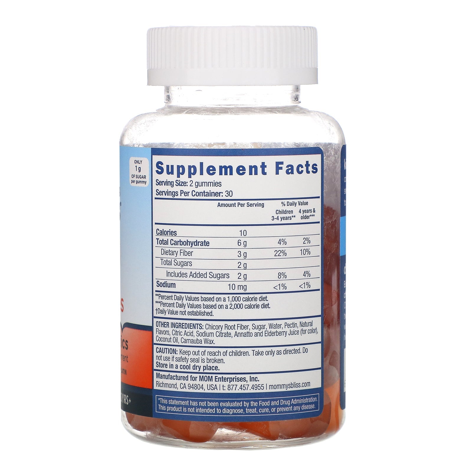 Mommy's Bliss, Kids Fiber Gummies + Prebiotics, Kids 3 Years+, Orange and Berry , 60 Gummies
