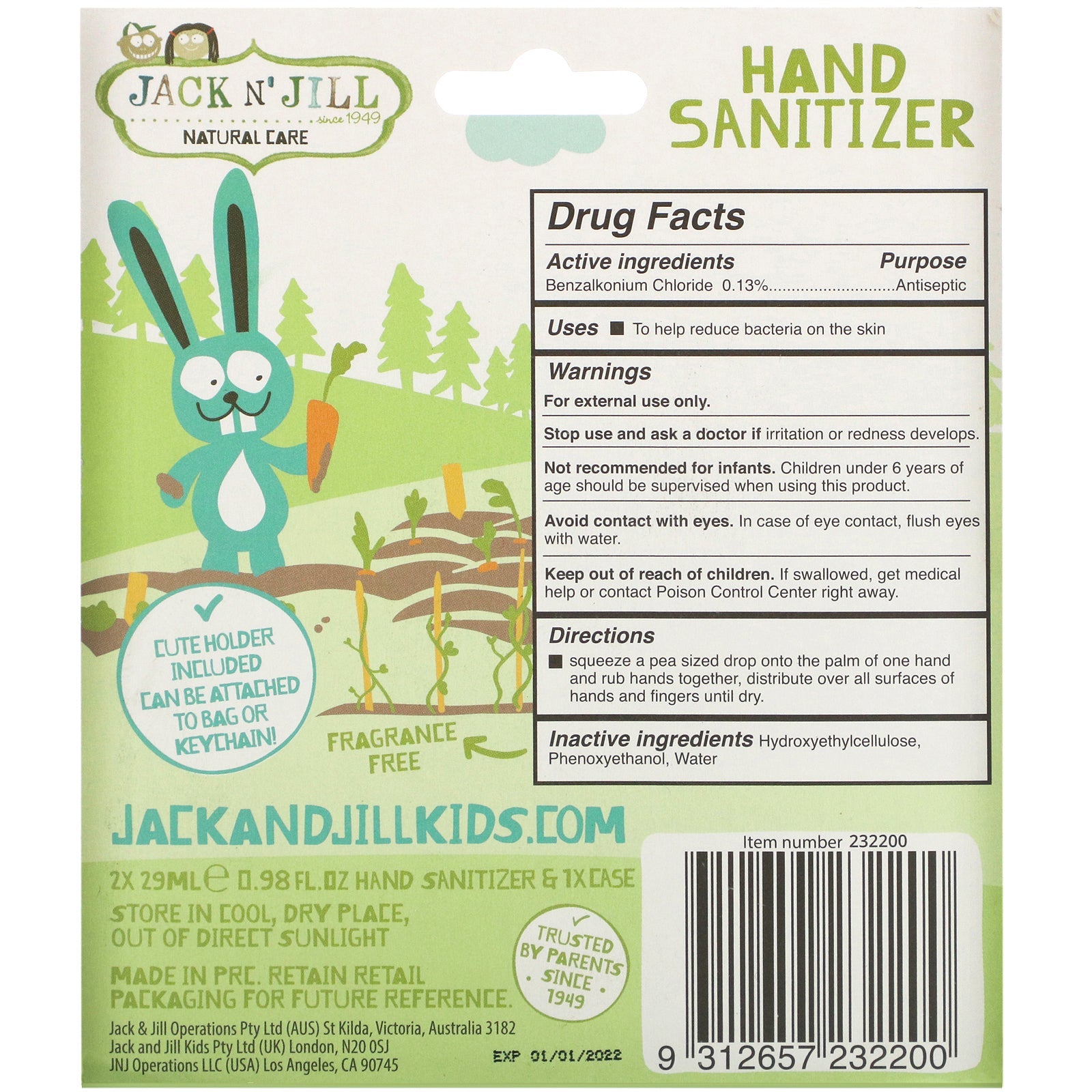 Jack n' Jill, Hand Sanitizer, Bunny, 2 Pack, 0.98 fl oz (29 ml) Each and 1 Case