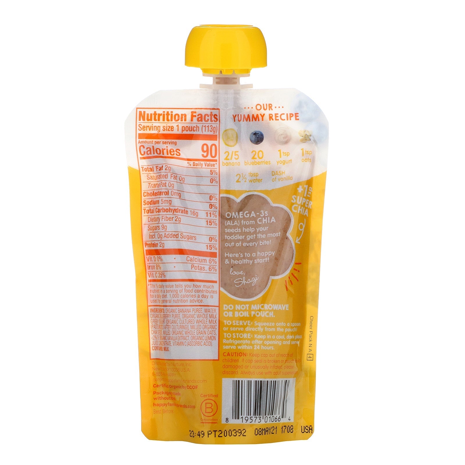 Happy Family s, Happy Tot, Super Morning, Fruit, Yogurt & Grain Blend, Bananas, Blueberries, Yogurt & Oats + Super Chia, Stage 4, 4 oz (113 g)
