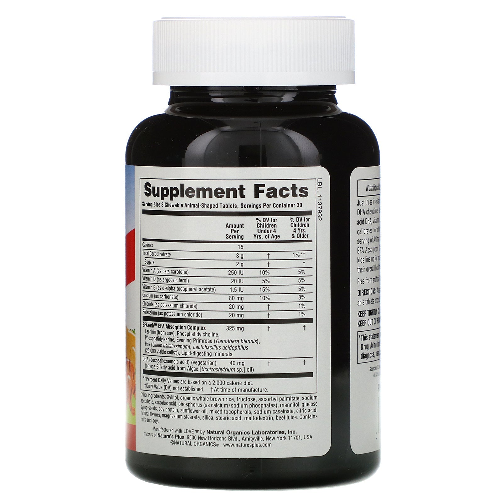 Gluten Free Omega-3 Fatty Acid Supplement with Whole Food Concentrates Nutritional support for overall well-being Just three irresistibly luscious, cherry-flavored Animal Parade DHA chewables deliver 40 mg of the essential omega-3 fatty acid DHA, vitamin A, vitamin D, and vitamin E in levels precisely calibrated for children's delicate nutritional needs. And each serving of Animal Parade DHA is supercharged with EFAsorb™ EFA Absorption Complex for optimal activity. So watch your kids line up for incredibly delicious cherry taste as you support their overall health with Animal Parade DHA.Sugg. UseAs a dietary supplement for children, three chewable tablets once daily.Other IngredientsXylitol, organic whole brown rice, fructose, ascorbyl palmitate, sodium ascorbate, ascorbic acid, phosphorus (as calcium/sodium phosphates), mannitol, glucose syrup solids, soy protein, sunflower oil, mixed tocopherols, sodium caseinate, citric acid, natural flavors, magnesium stearate, silica, stearic acid, maltodextrin, beet juice. Contains milk and soy. Free from artificial colors and preservatives.Supplement FactsServing...