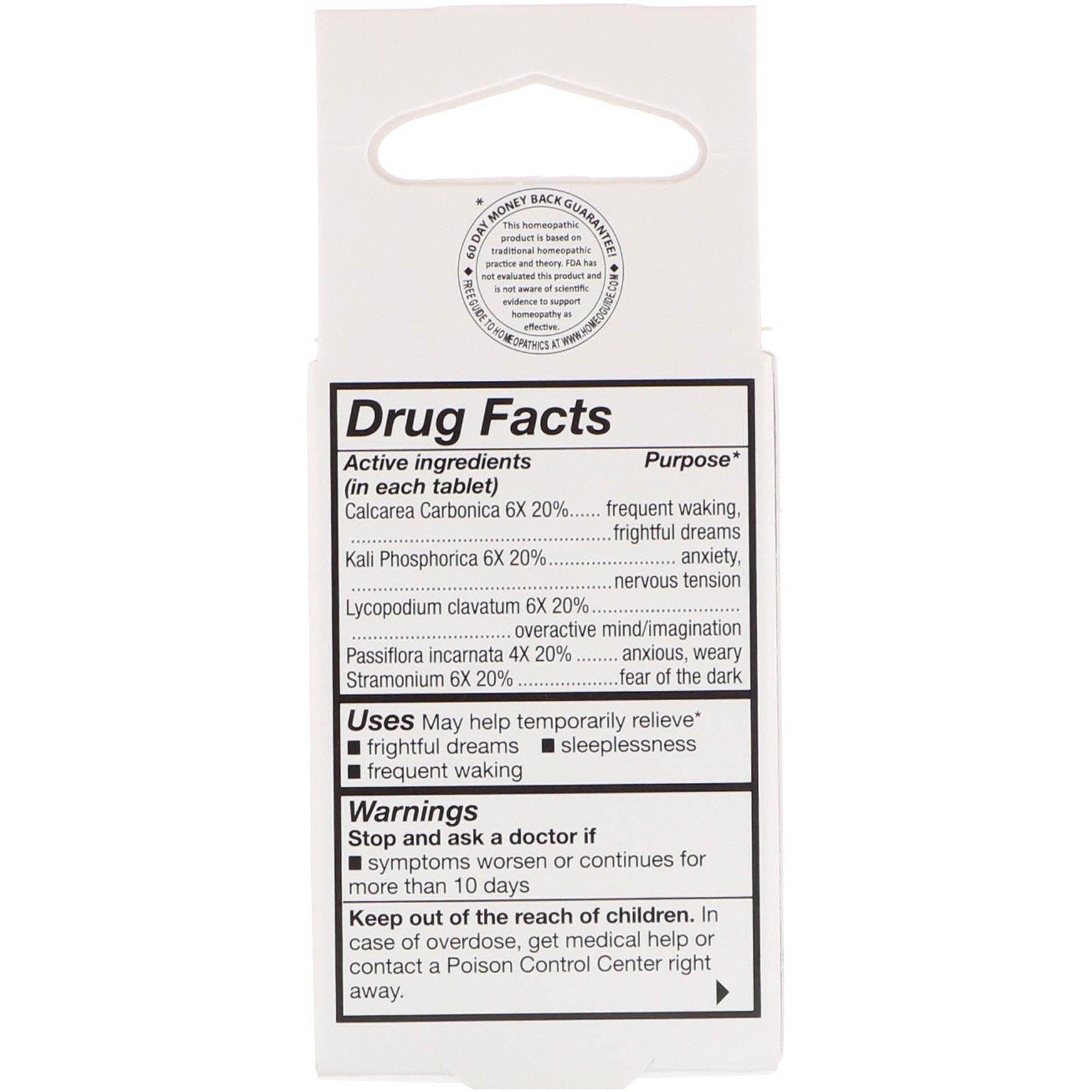 Homeopathic Medicine For Peaceful Sleep Natural Flavor Quality Parents Can Trust May Help Temporarily Relieve Frightful Dreams Frequent Waking Sleeplessness NatraBio mini chewable tablets deliver gentle remedies specifically developed for children. Our active ingredients are blended into each tablet, not sprayed on the surface, helping to ensure consistent delivery and dosing. *Based exclusively on references from homeopathic Materia Medica, HPUS and literature. Claims based on traditional homeopathic practice, not accepted medical evidence.Sugg. UseChildren 2 years and over: Take 3 chewable tablets to dissolve in mouth 30 minutes prior to bedtime and again at bedtime.Other IngredientsActive Ingredients (in each tablet) Purpose* Calcarea carbonica 6X 20% Frequent waking, frightful dreams Kali phosphorica 6X 20% Anxiety, nervous tension Lycopodium clavatum 6X 20% Overactive mind/imagination Passiflora incarnata 4X 20% Anxious, weary Stramonium 6X 20% Fear of the dark Inactive ingredients: Croscarmellose sodium, dextrose, lactose, magnesium stearate, microcrystalline cellulose, natural banana flavorSupplement FactsDisclaimerWhile VitaminsUK strives...