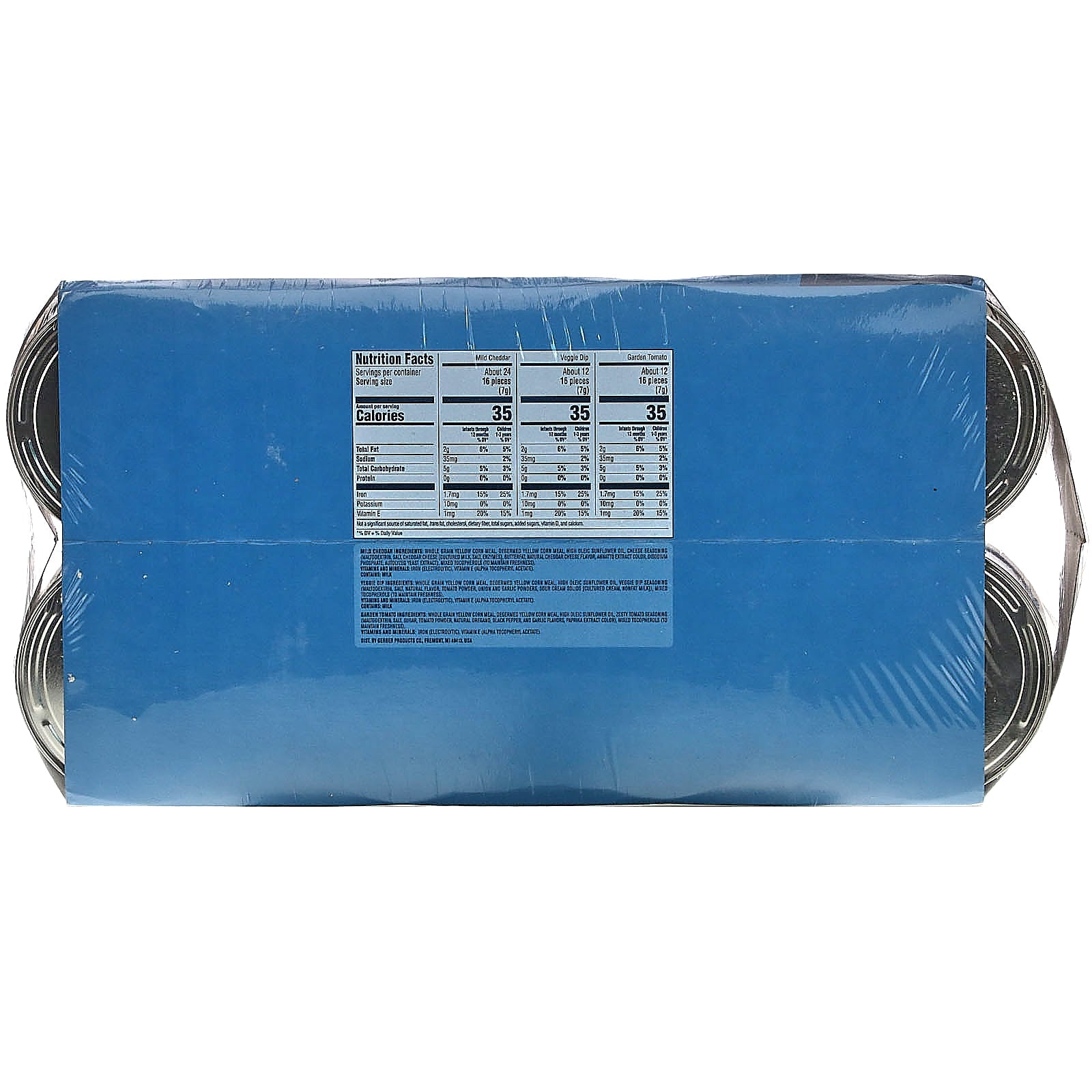 Mild Cheddar Ingredients: Whole grain yellow corn meal, degermed yellow corn meal, high oleic sunflower oil, cheese seasoning (maltodextrin, salt, cheddar cheese [cultured milk, salt, enzymes], butterfat, natural cheddar cheese flavor, annatto extract color, disodium phosphate, autolyzed yeast extract), mixed tocopherols (to maintain freshness), Vitamins And Minerals: Iron (electrolytic), vitamin E (alpha tocopheryl acetate). Contains: Milk. Veggie Dip Ingredients: Whole grain yellow corn meal, degermed yellow corn meal, high oleic sunflower oil, veggie dip seasoning (maltodextrin,salt, natural flavor, tomato powder, onion and garlic powders, sour cream solids [cultured cream, nonfat milk]), mixed tocopherols (to maintain freshness), Vitamin And Minerals: Iron (electrolytic), vitamin E (alpha tocopheryl acetate). Contains: Milk. Garden Tomato Ingredients: Whole grain yellow corn meal, degermed yellow corn meal, high oleic sunflower oil, zesty tomato seasoning (maltodextrin salt, sugar, tomato powder, natural oregano, black pepper, and garlic flavors, paprika extract color), mixed tocopherols (to maintain freshness), Vitamins and Minerals: Iron (electrolytic), vitamin E (alpha tocopheryl acetate).Supplement Facts