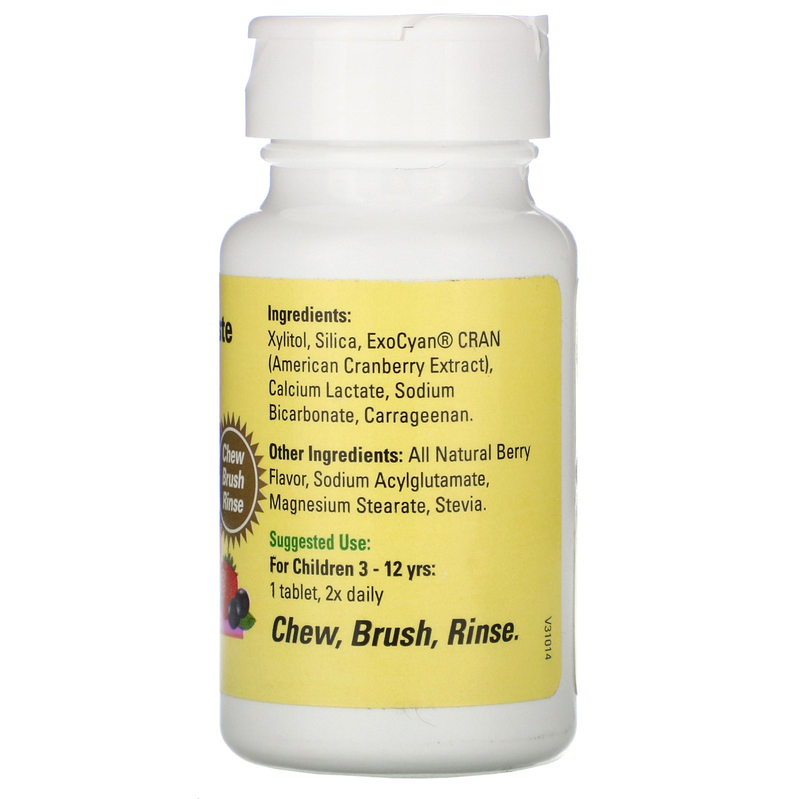 Essentials Gluten Free Casein Free Alcohol Free ChildLife uses only the highest quality ingredients.Sugg. UseFor Children 3-12 yrs: 1 tablet, 2x daily. Chew, brush, rinse.Other IngredientsXylitol, silica, ExoCyan Cran (american cranberry