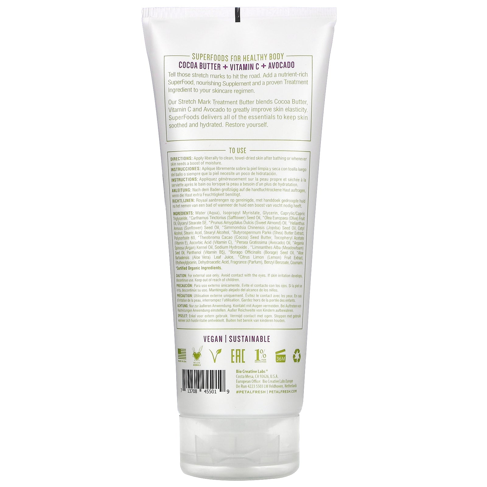 Reduce Appearance of Stretch Marks Improve Skin Elasticity Soothe Dry, Stretched Skin Vegan No Parabens No Sulfates No Phthalates Cruelty Free SuperFoods for Healthy Body Our Stretch out treatment butter treats stretch marks on the skin. Nourishing Cocoa Butter, hard-working Vitamin E, and hydrating Avocado work to improve the skin's elasticity while soothing dry, stretched skin for the ultimate stretch mark treatment. Stretch Out is the perfect treatment butter for you. Superfood + Supplement + Treatment Ingredient SuperFoods for Body is a combination of nutrient-rich SuperFood, a nourish supplement and a proven treatment ingredient to treat your skin. Our Story Based in sunny Southern California, Petal Fresh was started by a group of passionate individuals pursuing a more natural and healthy lifestyle. At Petal Fresh, we believe that what you put on your body is just as important as what you put in it. We infused our formulas with the most natural, Certified Organic ingredients to create effective products, naturally.