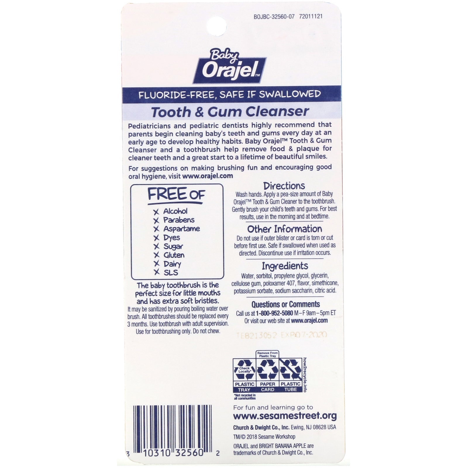 Safe If Swallowed Extra Soft Bristles Contains: 1 Toothbrush, 1 Tooth Cleanser Pediatricians and pediatric dentists highly recommend that parents begin cleaning baby's teeth and gums every day at an early age to develop healthy habits. Baby Orajel Tooth &