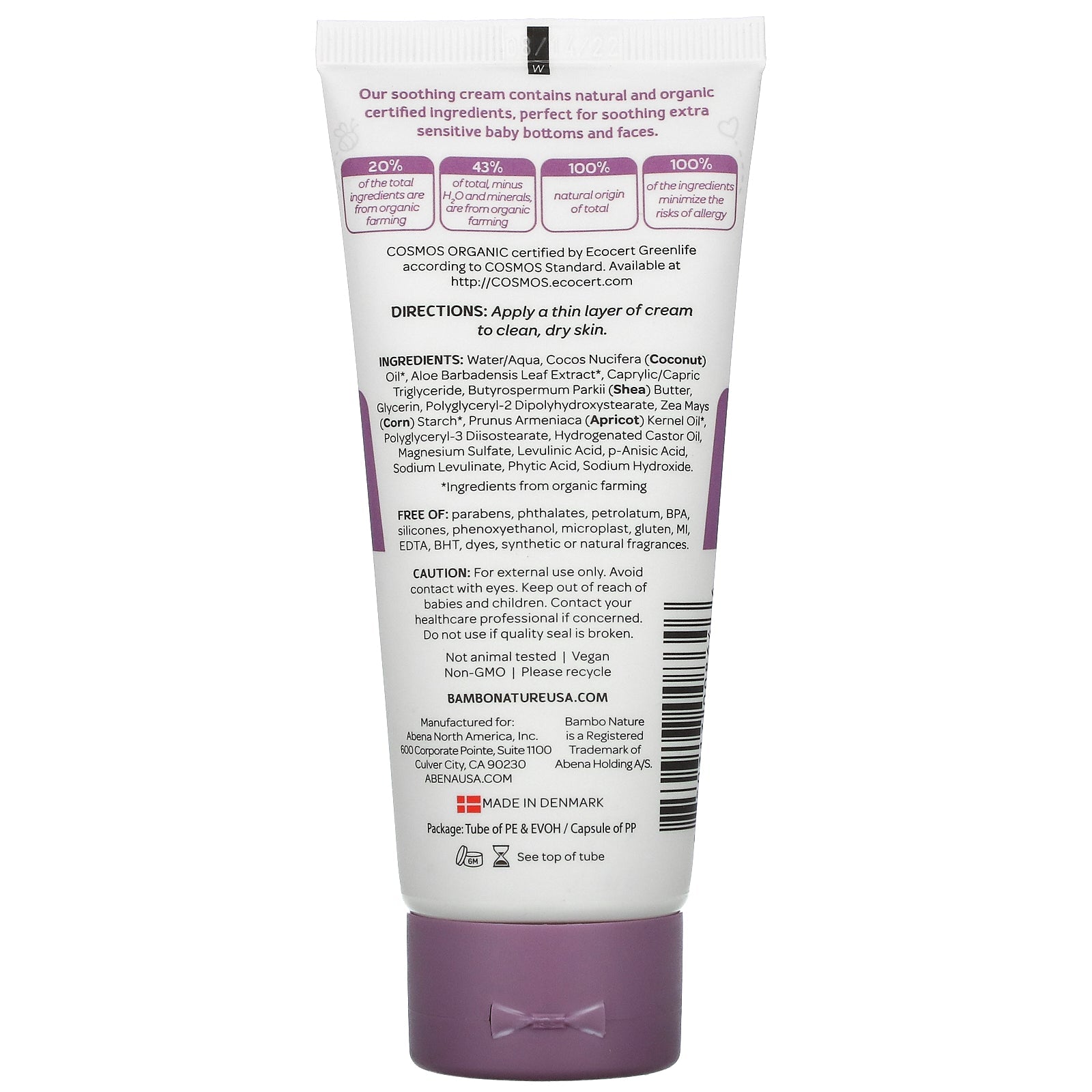 For the love of babies, bees, birds & trees® Natural & Organic Certified No Added Fragrances, Dyes, or Parabens Gentle on Your Baby's Skin Asthma Allergy Nordic - Selected with Care Cosmos Organic Certified by Ecocert Greenlife According to COSMOS Standard Not Animal Tested Vegan Non-GMO Our soothing cream contains natural and organic certified ingredients, perfect for soothing extra sensitive baby bottoms and faces. 20% of the total ingredients are from organic farming 43% of total, minus H2O and minerals, are from organic farming 100% natural origin of total 100% of the ingredients minimize the risks of allergySugg. UseApply a thin layer of cream to clean, dry skin.Other IngredientsWater, cocos nucifera (coconut) oil*, aloe barbadensis leaf extract*, caprylic/capric triglyceride, butyrospermum parkii (shea) butter, glycerin, polyglyceryl-2 dipolyhydroxystearate, zea mays (corn) starch*, prunus armeniaca (apricot) kernel oil*, polyglyceryl-3 diisostearate, hydrogenated castor oil, magnesium sulfate, levulinic acid, p-anisic acid, sodium levulinate, phytic acid,...