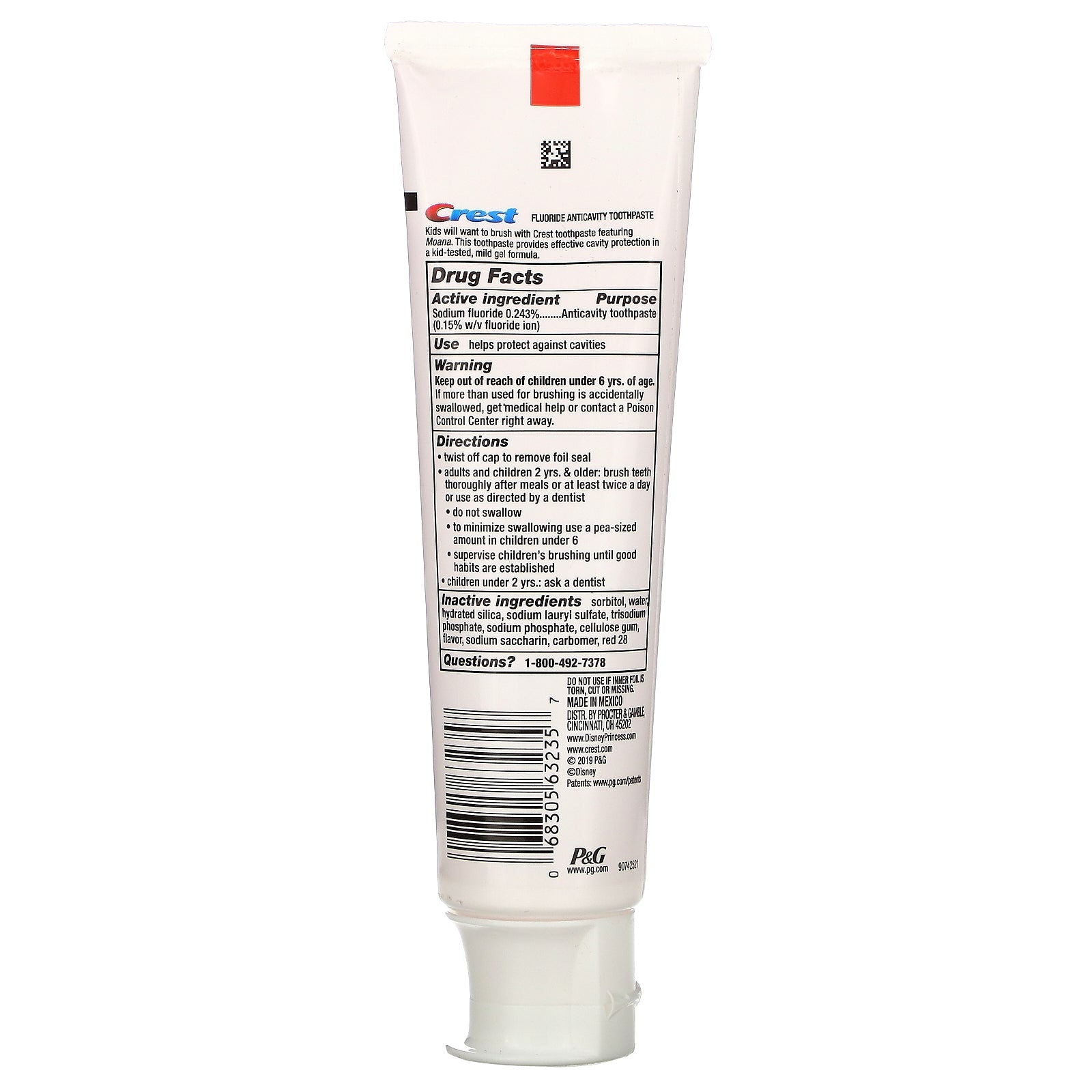 3+ Years Kids will want to brush with Crest toothpaste featuring Moana. This toothpaste provides effective cavity protection in a kid-tested, mild gel formula. Use : Helps protect against cavities.Sugg. UseTwist off cap to remove foil seal. Adult