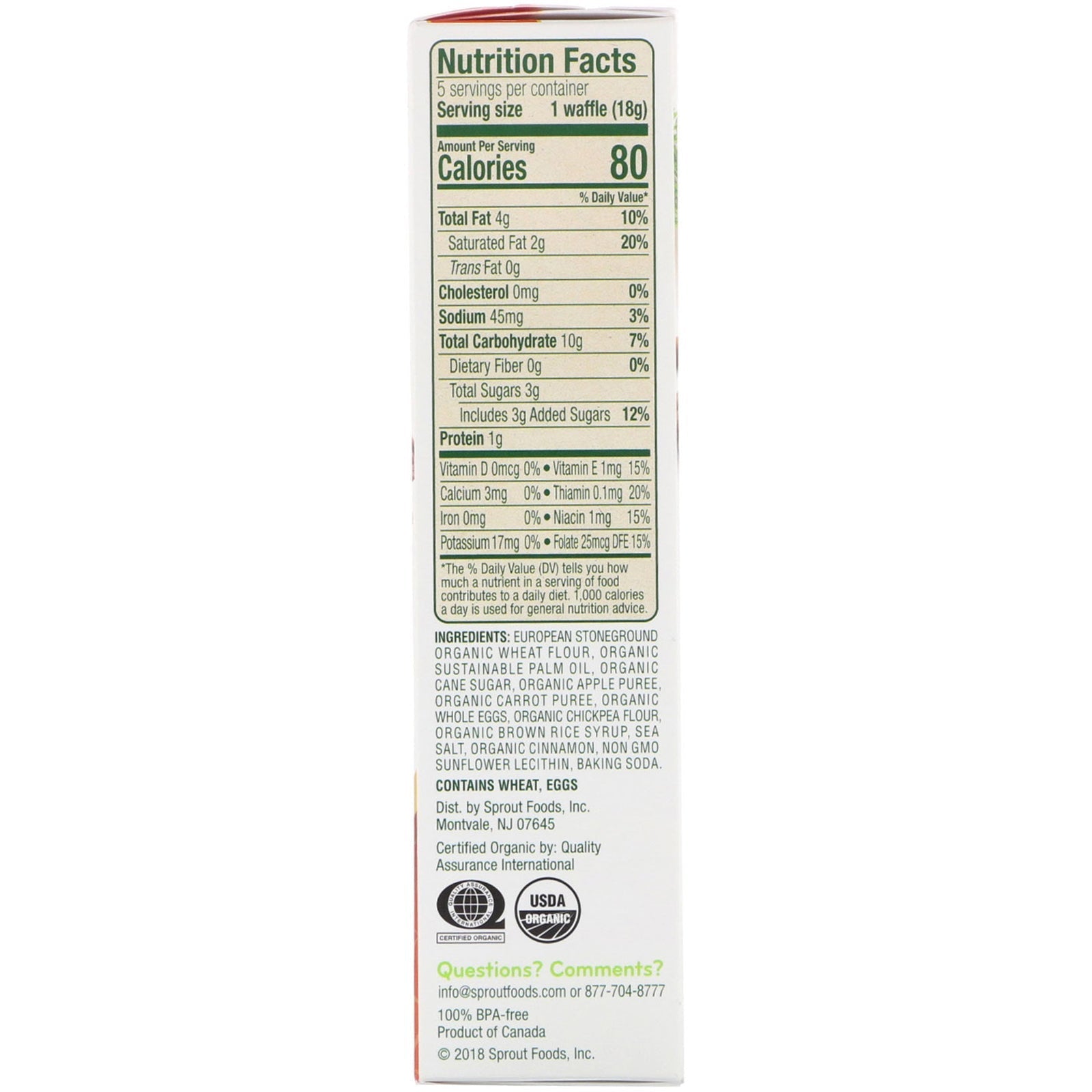Oven Baked Stoneground Wheat Snack Made with Real Fruit & Veggies, Nothing Artificial 5 Individually Wrapped Waffles USDA Certified Kosher Made with 100% Stoneground European Wheat, Real Fruit & Veggies Certified by Quality Assurance Internationally No Added Colors or Flavors Made With Real Whole Eggs Non GMO Nothing Artificial The Perfect Oven Baked Snack For Hungry Toddlers Sprout - Wholesome Snacking Made Fun! Sprout has re-imagined the popular Belgian treat to create the perfect toddler snack. Each individually wrapped waffle made with stoneground wheat flour & whole fruits and veggies mixed throughout the yummy batter provides a perfect, wholesome & delicious snack for little hands. Is your child ready for Wafflez? Starts to stand and walk alone. Feeds self easily with fingers. Chews through a variety of textures. Eat thicker solids with larger pieces.