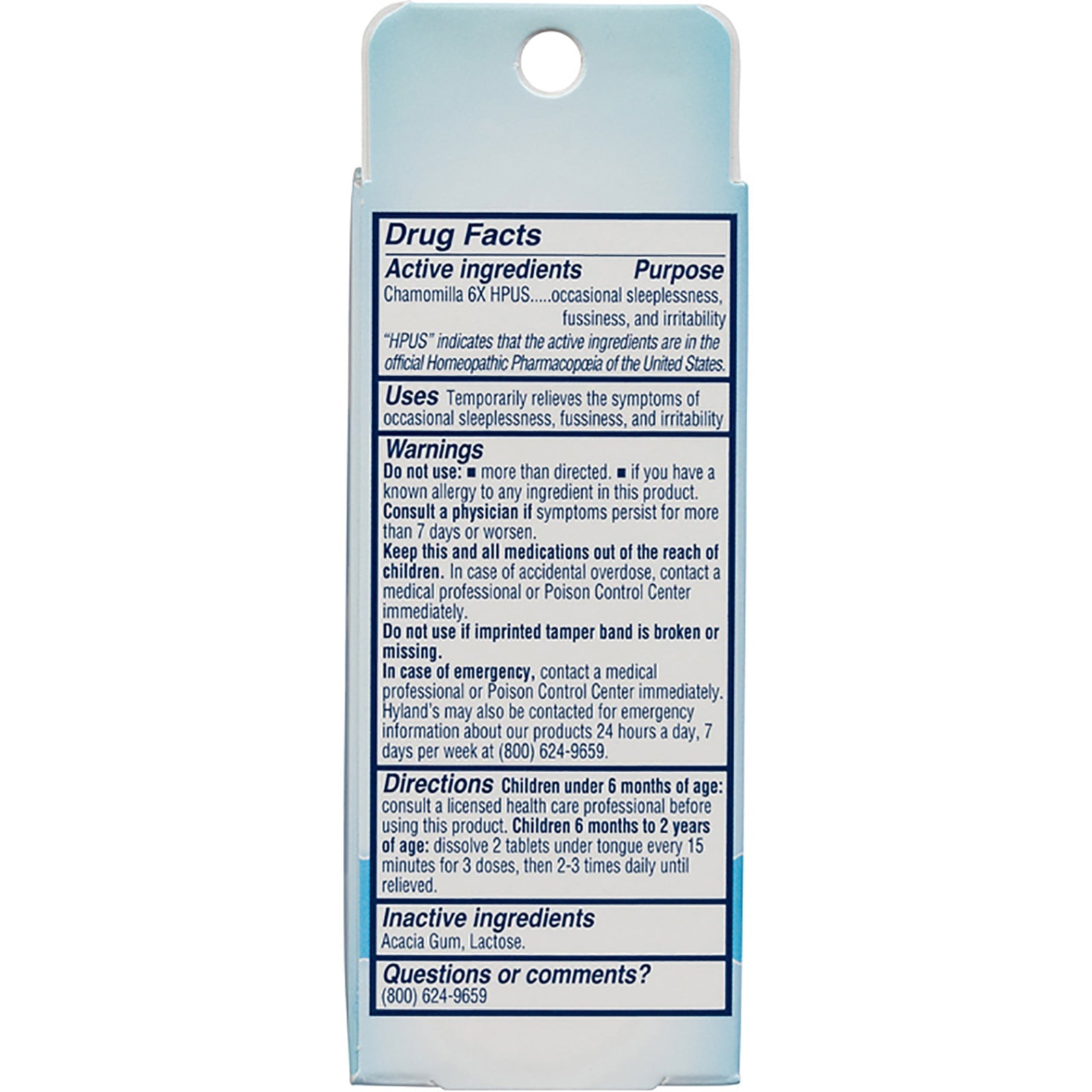 Dissolves Instantly in Mouth! Since 1903 Homeopathic Natural Relief One Active Ingredient Relief of Occasional Sleeplessness, Fussiness, and Irritability No Artificial Flavors, Dyes or Parabens Actual Size 65 mg Uses: Temporarily relieves the symptoms of occasional sleeplessness, fussiness, and irritability.Sugg. UseChildren under 6 months of age : Consult a licensed health care professional before using this product. Children 6 months to 2 years of age : Dissolve 2 tablets under tongue every 15 minutes for 3 doses, then 2-3 times daily until relieved.Other IngredientsActive Ingredients Purpose Chamomilla 6X HPUS Occasional sleeplessness, fussiness, and irritability "HPUS" indicates that the active ingredients are in the official Homeopathic Pharmacopoeia of the United States. Inactive Ingredients Acacia gum, lactose.Supplement FactsDisclaimerWhile VitaminsUK strives to ensure the accuracy of its product images and information, some manufacturing changes to packaging and/or ingredients may be pending update on our site. Although items may occasionally ship with alternate packaging,...