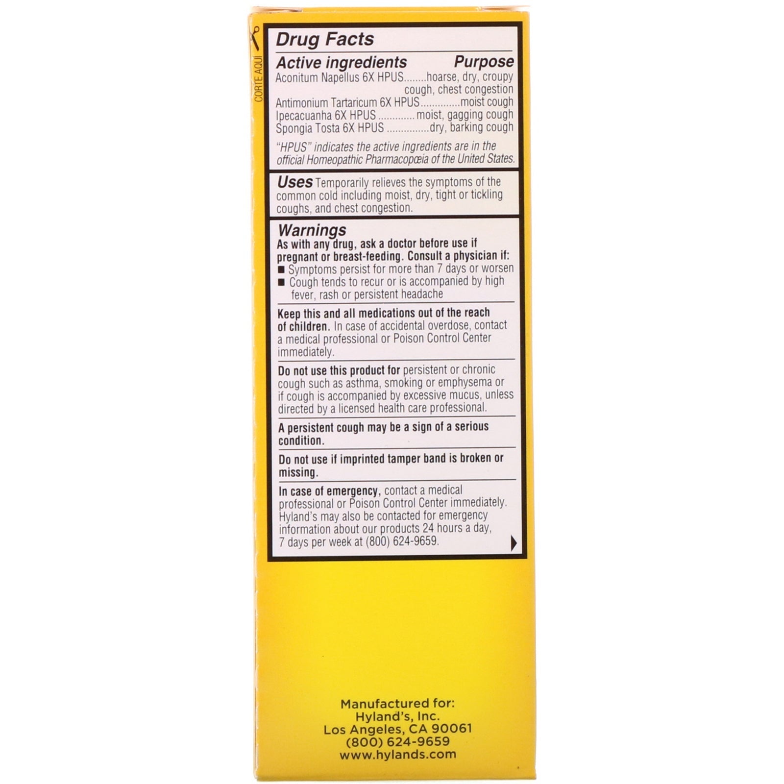 Homeopathic Natural Relief Since 1903 Chest Congestion Cough Alcohol Free Dye Free Safe & Effective Hyland's 4 Kids Cough Syrup with 100% Natural Honey provides natural relief of coughs due to colds in children and it tastes great too! Our formulas are always: Safe & Effective Made with natural active ingredients Free of artificial colors and flavors Free of stimulant side effects Uses: Temporarily relieves the symptoms of the common cold including moist dry, tight or tickling cough, and chest congestion.