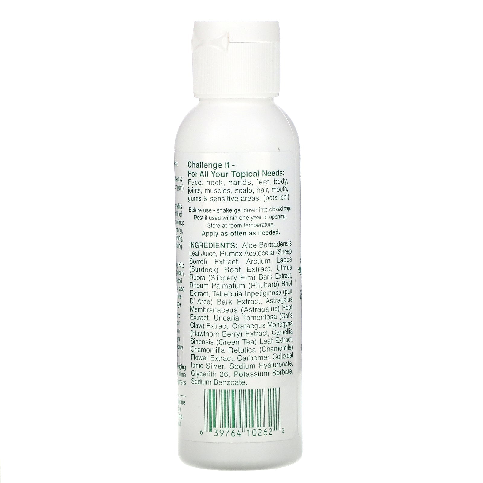 Aloe barbadensis leaf juice, rumex acetocella (sheep sorrel) extract, arctium lappa (burdock) root extract, ulmus rubra (slippery elm) bark extract, rheum palmatum (rhubarb) root extract, tabebuia inpetiginosa (pau d'arco) bark extract, astragalus membranaceus (astragalus) root extract, uncaria tomentosa (cat's claw) extract, crataegus monogyna (hawthorn berry) extract, camellia sinensis (green tea) leaf extract, chamomile retutica (chamomile) flower extract, carbomer, colloidal ionic silver, sodium hyaluronate, glycerin 26, potassium sorbate, sodium benzoate.Supplement Facts