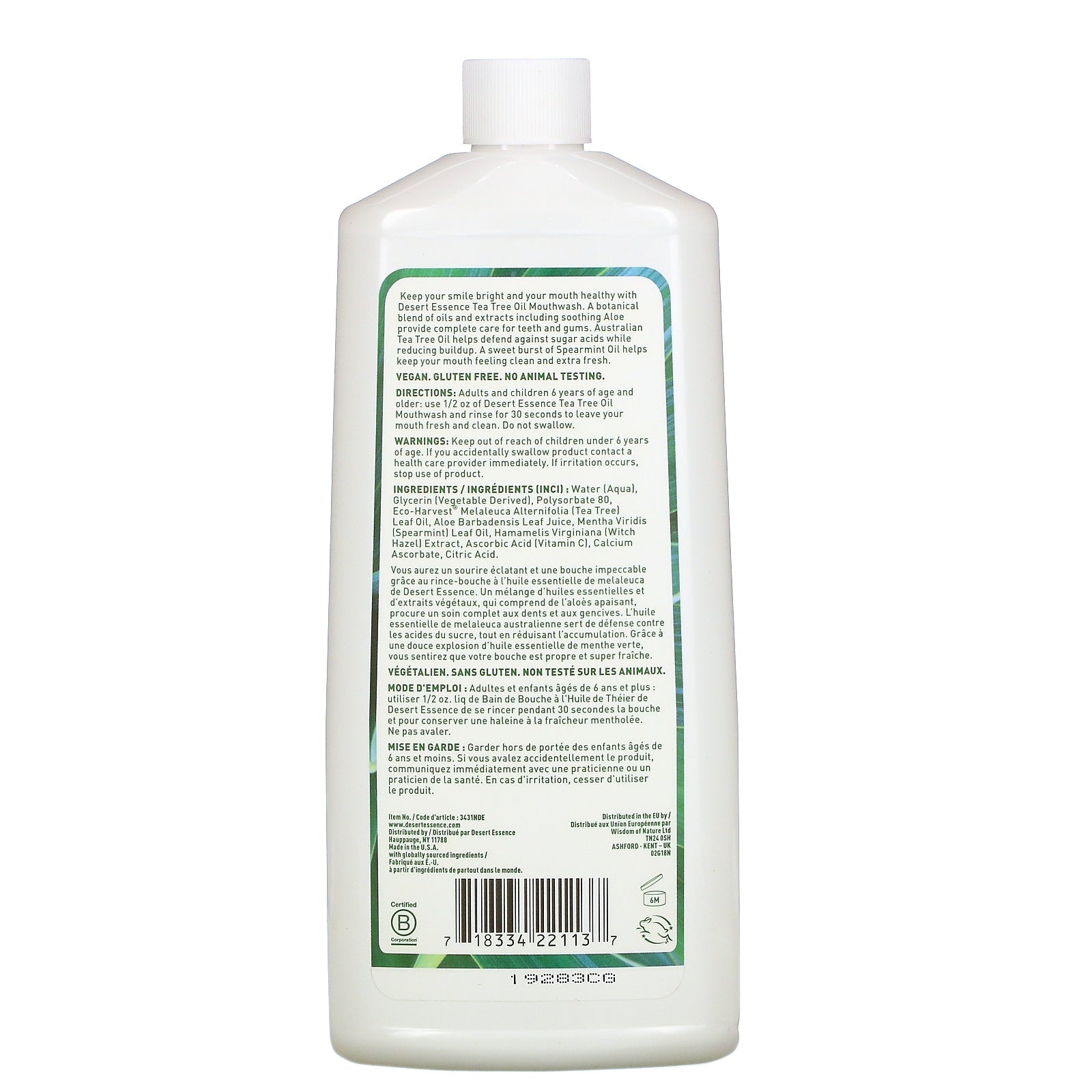 Sugar Free Alcohol Free Vegan Gluten Free No Animal Testing Certified B Corporation Leaping Bunny Certified Keep your smile bright and your mouth healthy with Desert Essence Tea Tree Oil Mouthwash. A botanical blend of oils and extracts including soothing