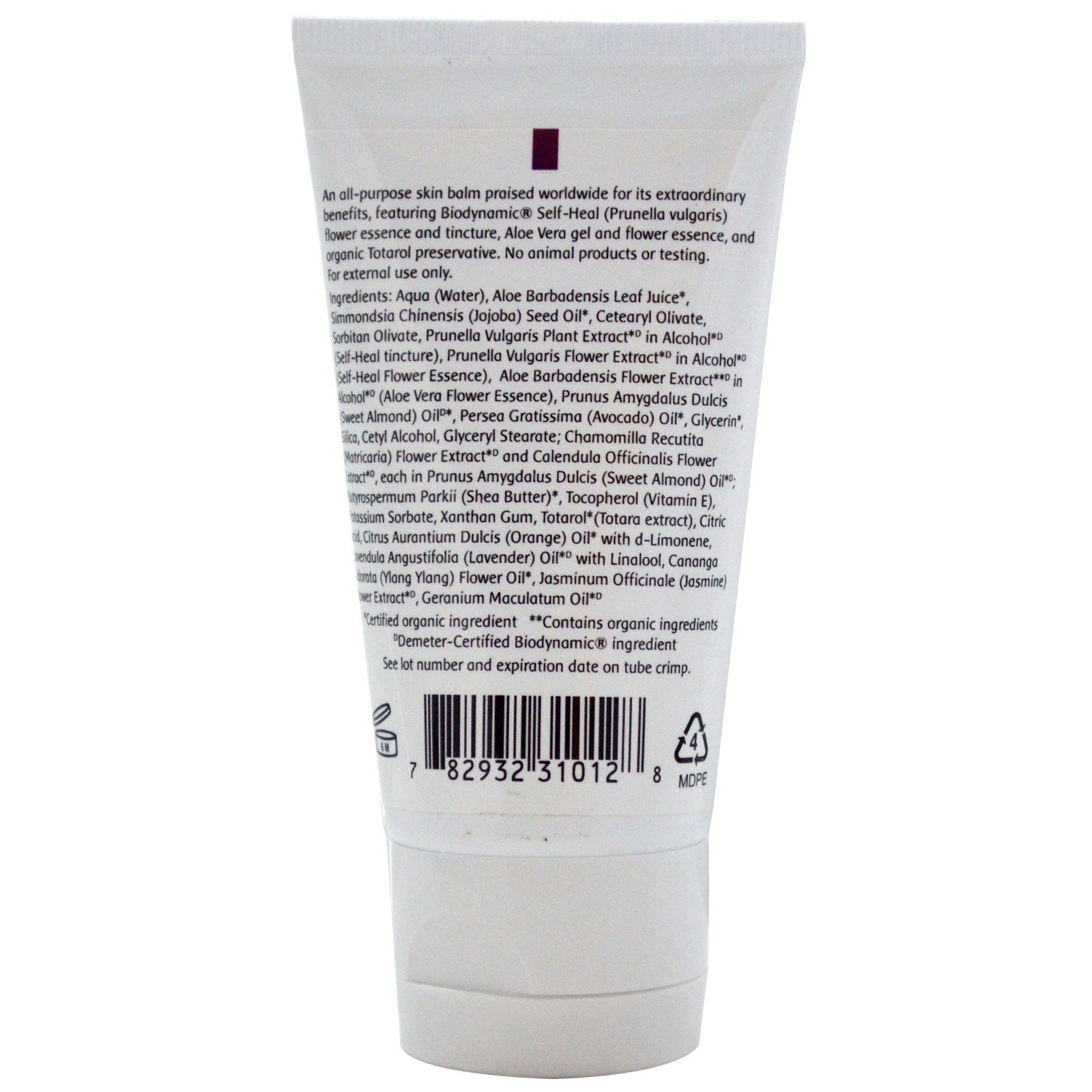 Renewing & Soothing Contains Organic Flower Essences, Oils, Herbal Extracts Certified to NSF/ANSI 305 by Oregon Tilth An all purpose skin balm praised worldwide for its extraordinary benefits, featuring Biodynamic Self-Heal (Prunella vulgaris) flower essence and tincture, Aloe Vera gel and flower essence, and organic Totarol preservative.Sugg. UseOther IngredientsAqua (water), aloe barbadensis leaf juice*, simmondsia chinensis (jojoba) seed oil*, cetearyl olivate, sorbitan olivate, prunella vulgaris plant extract* D in alcohol* D (self-heal tincture), prunella vulgaris flower extract* D in alcohol* D (self-heal flower essence), aloe barbadensis flower extract** D in alcohol D (aloe vera flower essence), prunus amygdalus dulcis (sweet almond) oil D , persea gratissima (avocado)*, glycerin*, silica, cetyl alcohol, glyceryl stearate; chamomile recutita (matricaria) flower extract* D and calendula officinalis flower extract* D , each in prunus amygdalus dulcis (sweet almond) oil* D , butyrospermum parkii (shea butter)*, tocopherol (vitamin E), potassium sorbate, xanthan gum, totarol* (totara extract),...
