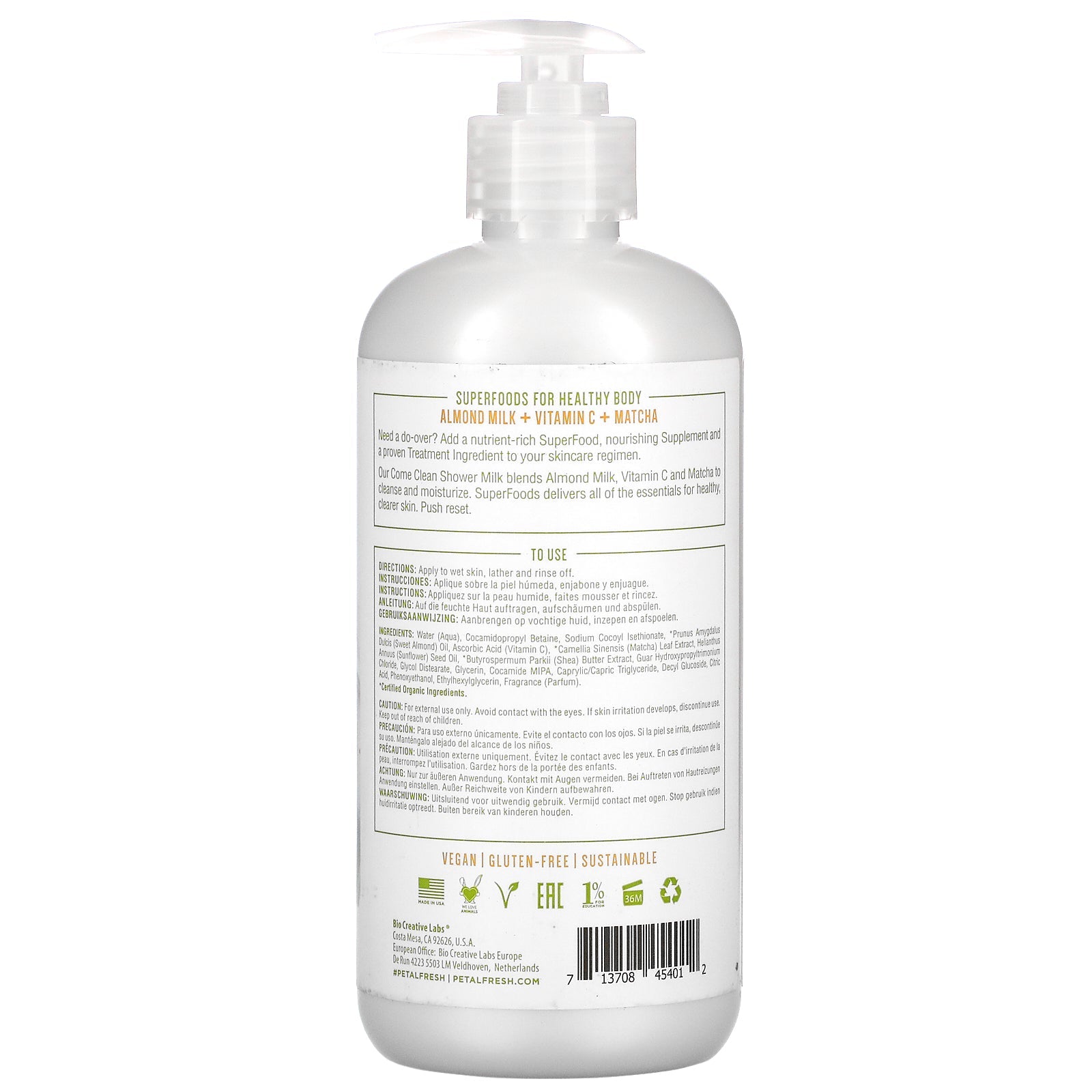 Petal Fresh, Pure, SuperFoods for Bath, Come Clean Detoxifying Shower Milk, Almond Milk, Vitamin D & Matcha, 16 fl oz (475 ml)