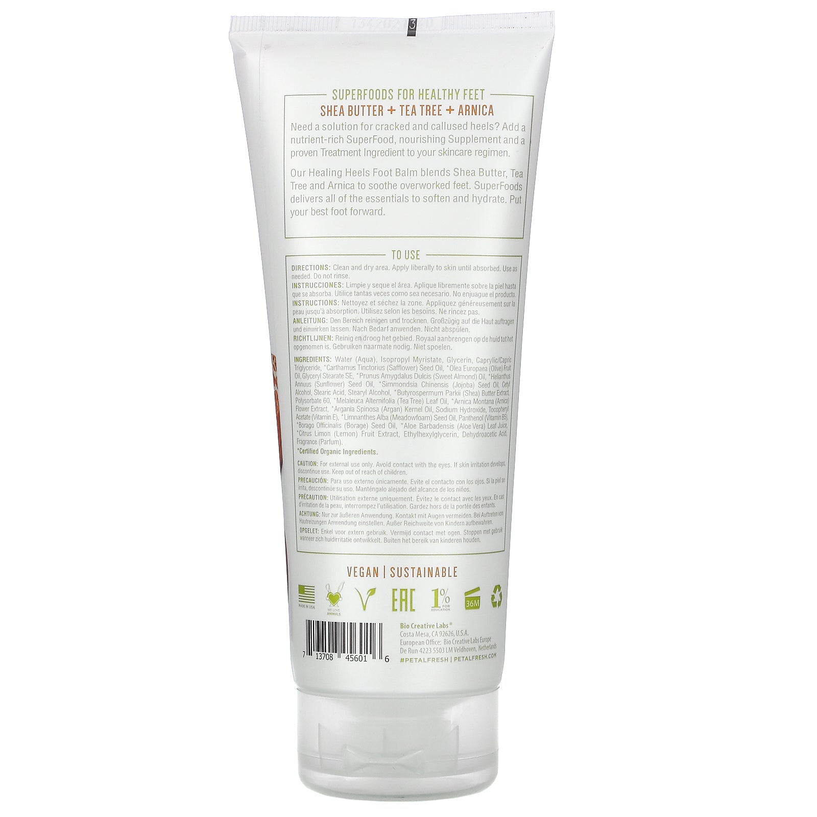 Healing Heels Heal Cracked & Calloused Heels Hydrate Rough, Dry Skin Soothe Itch & Irritation Vegan No Parabens No Sulfates No Phthalates Cruelty Free SuperFoods for Healthy Feet Our Healing Heels Foot Balm is the perfect, natural solution for your cracked and calloused heels. Infused with a powerhouse combination of Shea Butter. Tea Tree and Arnica. Healing Heels will hydrate and moisture rough feet and dry skin so you can put your best "feet" forward. Superfood + Supplement + Treatment Ingredient SuperFoods for feet is a combination of nutrient-rich SuperFood, a nourishing supplement and a proven treatment ingredient to revitalize feet & heels for a healthier appearance. Our Story Based in sunny Southern California, Petal Fresh was started by a group of passionate individuals pursuing a more natural and healthy lifestyle. At Petal Fresh, we believe that what you put on your body is just as important as what you put in it. We infused our formulas with the most natural, Certified Organic ingredients to create effective products, naturally.