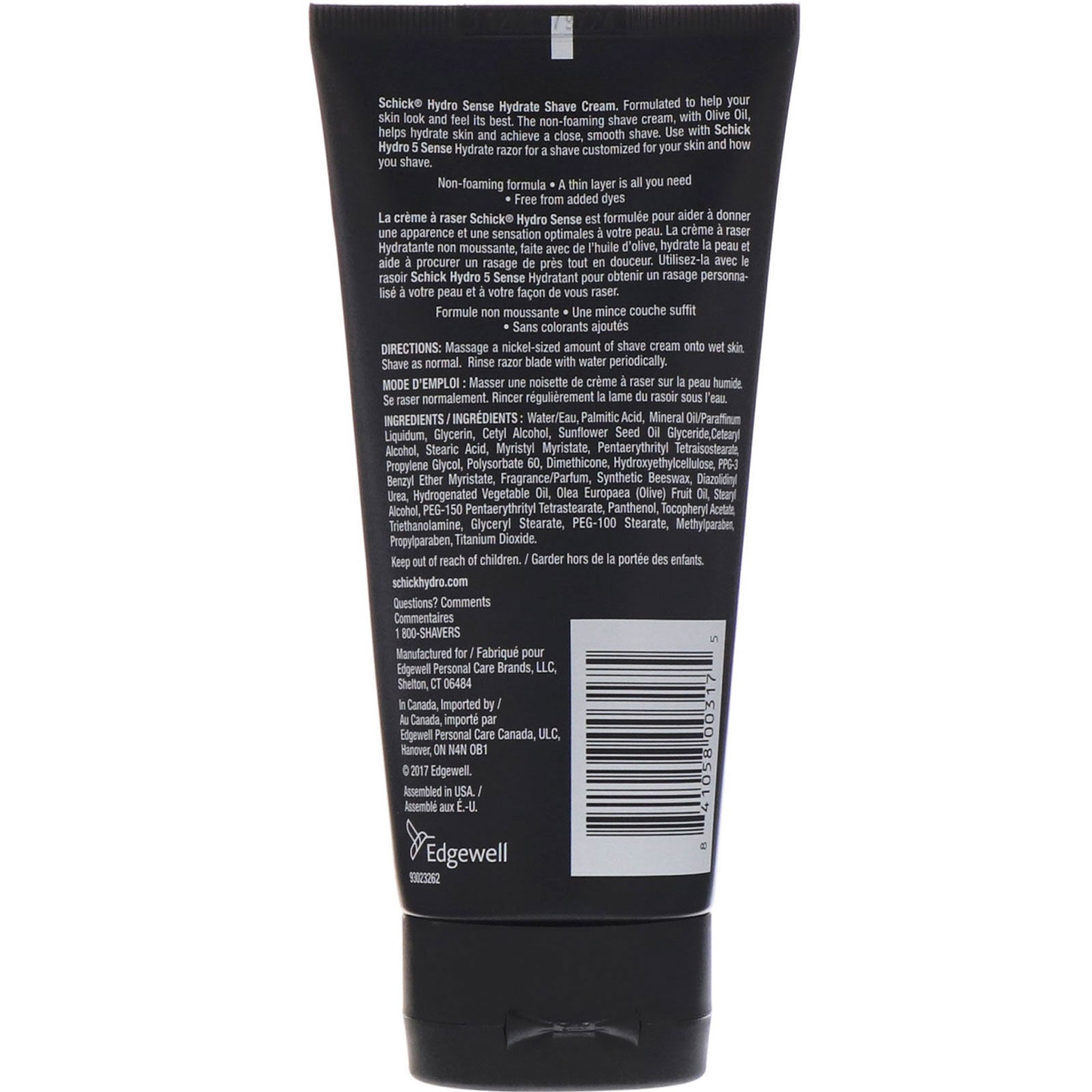 Protects Skin from Irritation Non-Foaming Formula A Thin Layer is All You Need Free from Added Dyes Schick® Hydro Sense Hydrate Shave Cream. Formulated to help your skin look and feel its best. The non-foaming shave cream, with Olive Oil, helps hydrate s