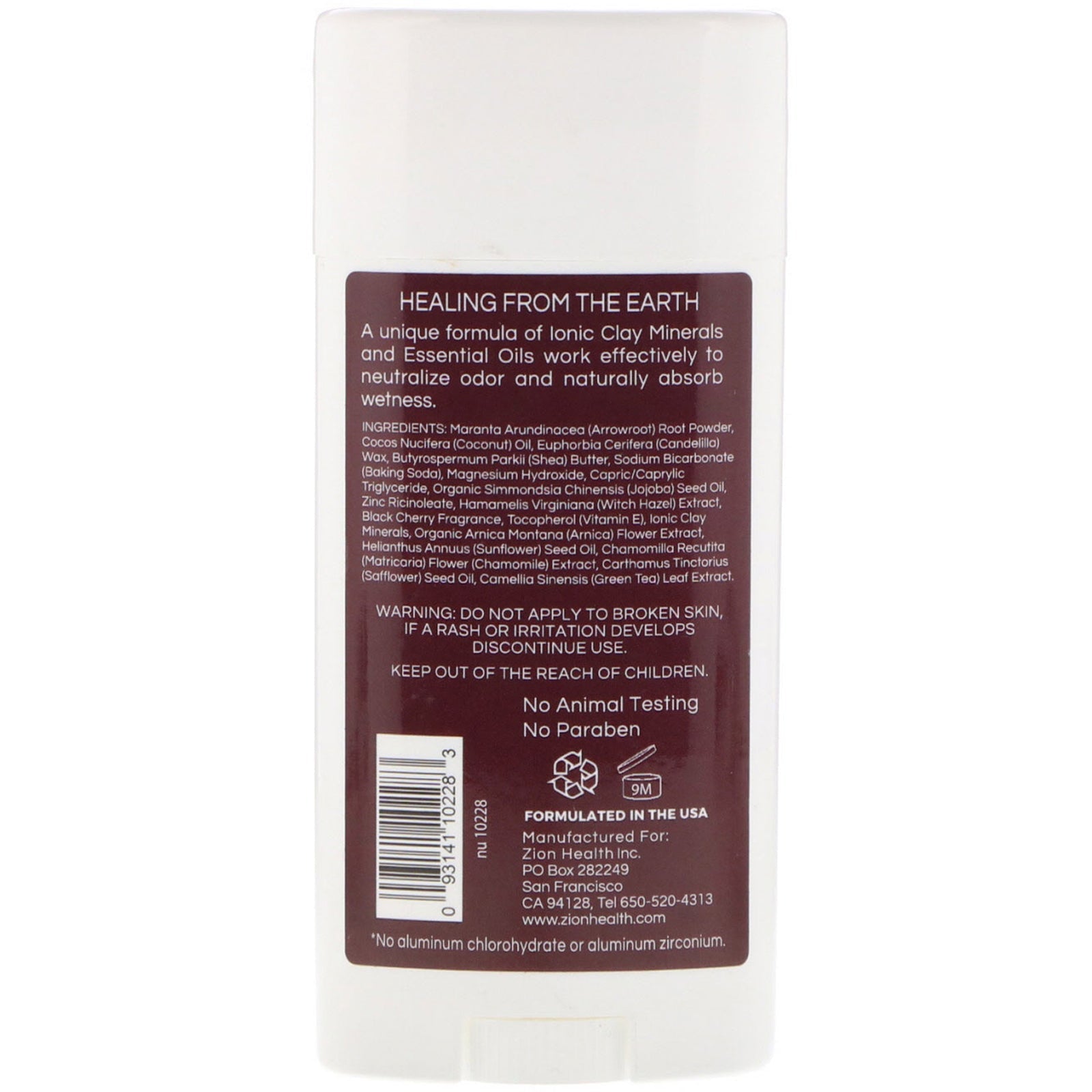 Extra Strength Protection *No Aluminum Vegan No Animal Testing No Paraben Healing From The Earth A unique formula of Ionic Clay Minerals and Essential Oils work effectively to neutralize odor and naturally absorb wetness. *No aluminum chlorohydrate or alu