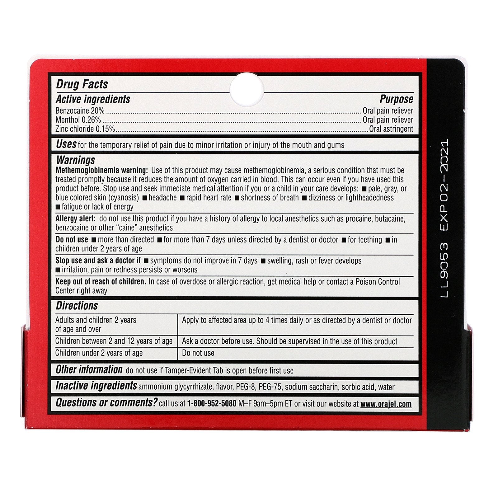 #1 Oral Pain Reliever Brand for Toothache Ready-Open Tube Tip 20% Benzocaine to Relieve Oral Pain Cooling Relief to Soothe Gums Relieves Gum Irritation Oral Pain Reliever Use: For the temporary relief of pain due to minor irritation or Injury of the mouth