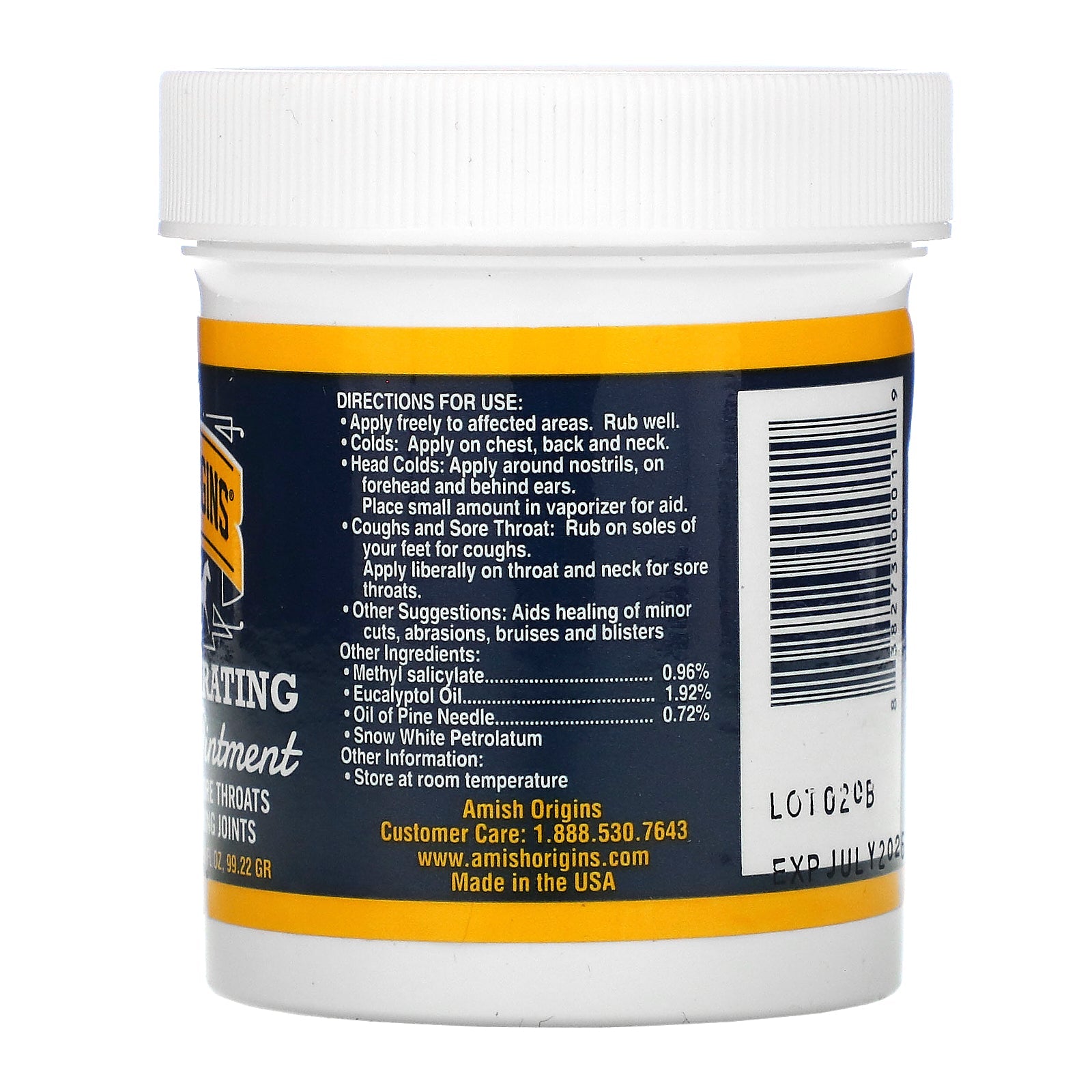 Arthritis Colds Sore Throats Restless Legs Aching Joints Natural Ingredients Uses Arthritis Pain, Sore Joints and Muscles, Coughs, Sore Throat, Sinus Trouble, Bruises, Minor Burns, Insect Bites, Dry or Chapped Hands and Feet. Amish Origins Deep Penetrati