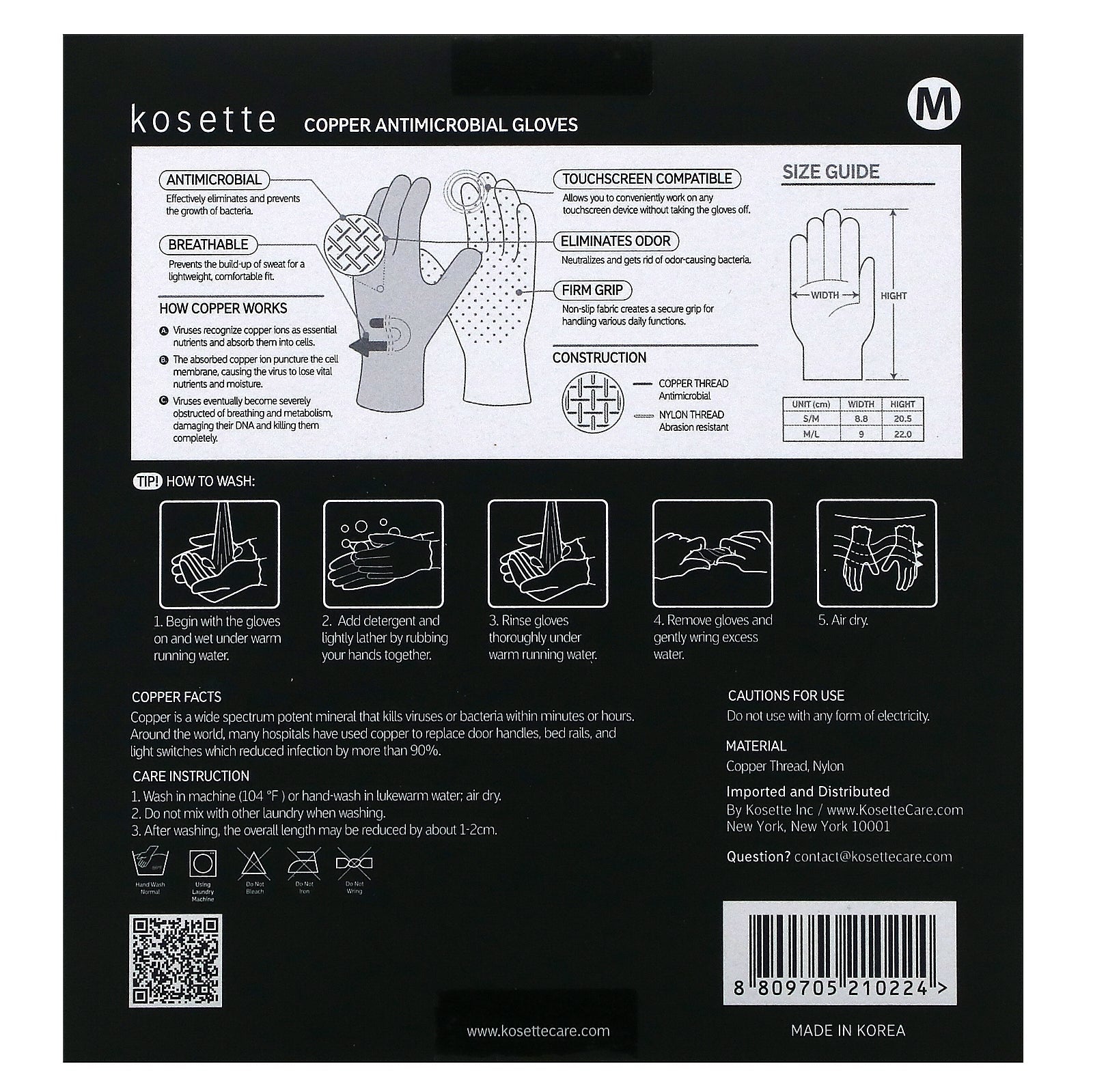 Kosette, Copper Antimicrobial Gloves, Medium, 1 Pair