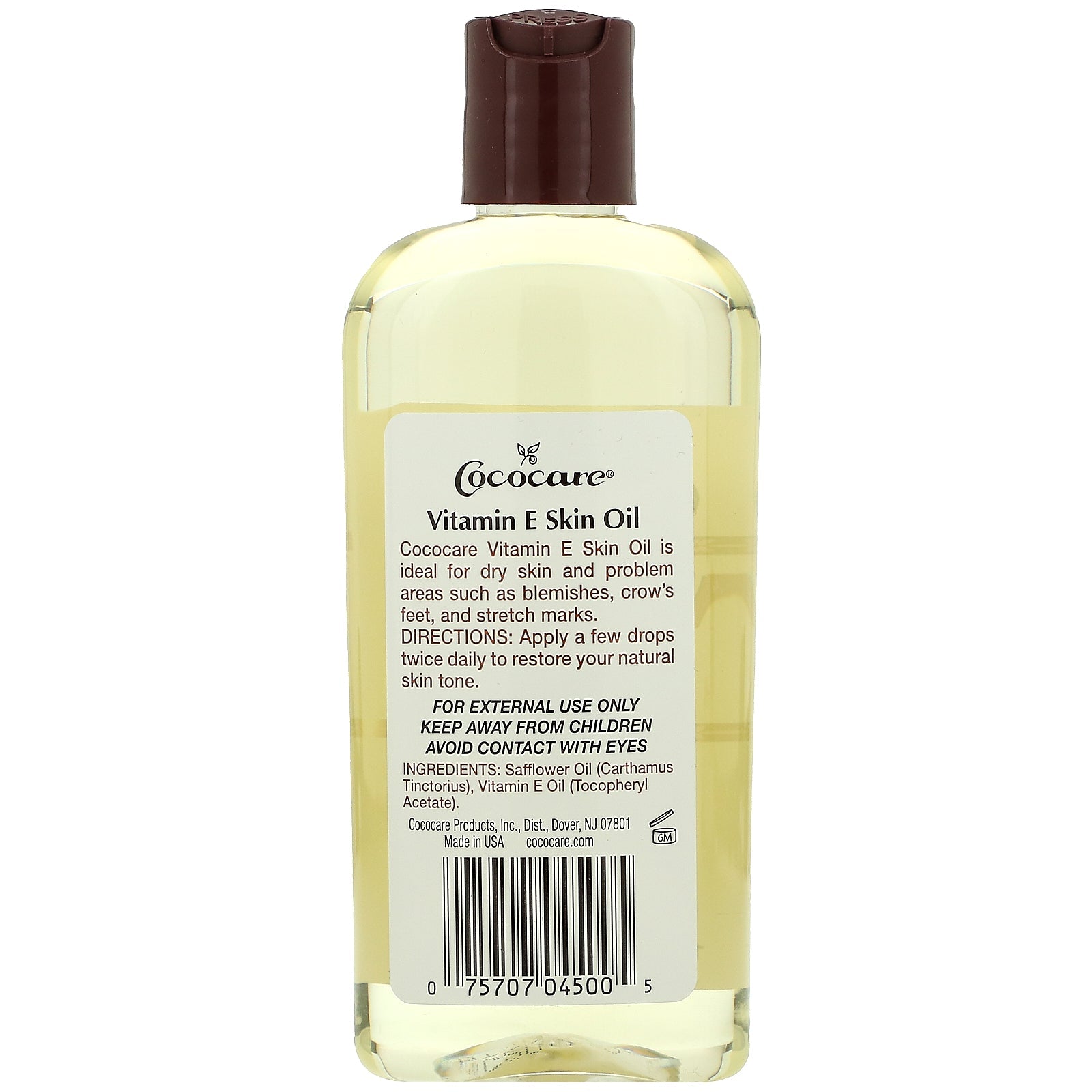 10,000 I.U. Vitamin E Skin Oil Cococare vitamin E Skin Oil is ideal for dry skin and problem areas such as blemishes, crow's feet, and stretch marks.Sugg. UseApply a few drops twice daily to restore your natural skin tone.Other IngredientsSunflower oil (carthamus tinctorius), vitamin E oil (tocopheryl acetate).Supplement FactsDisclaimerWhile VitaminsUK strives to ensure the accuracy of its product images and information, some manufacturing changes to packaging and/or ingredients may be pending update on our site. Although items may occasionally ship with alternate packaging, freshness is always guaranteed. We recommend that you read labels, warnings and directions of all products before use and not rely solely on the information provided by VitaminsUK.