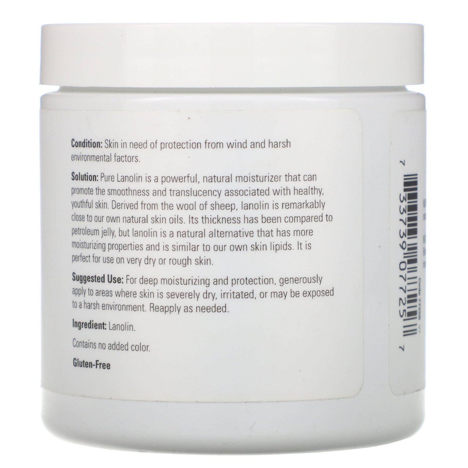 100% Pure Protects Skin from Harsh Environmental Conditions Gluten-Free Condition: Skin in need of protection from wind and harsh environmental factors. Solution: Pure Lanolin is a powerful, natural moisturizer that can promote the smoothness and translucency associated with healthy, youthful skin. Derived from the wool of sheep, lanolin is remarkably close to our own natural skin oils. Its thickness has been compared to petroleum jelly, but lanolin is a natural alternative that has more moisturizing properties and is similar to our own skin lipids. It is perfect for use on very dry or rough skin. Now 100% pure lanolin is solid in its natural state.Sugg. UseFor deep moisturizing and protection, generously apply to areas where skin is severely dry, irritated, or may be exposed to a harsh environment. Reapply as needed.Other IngredientsLanolin. Contains no added color.Supplement FactsDisclaimerWhile VitaminsUK strives to ensure the accuracy of its product images and information, some...