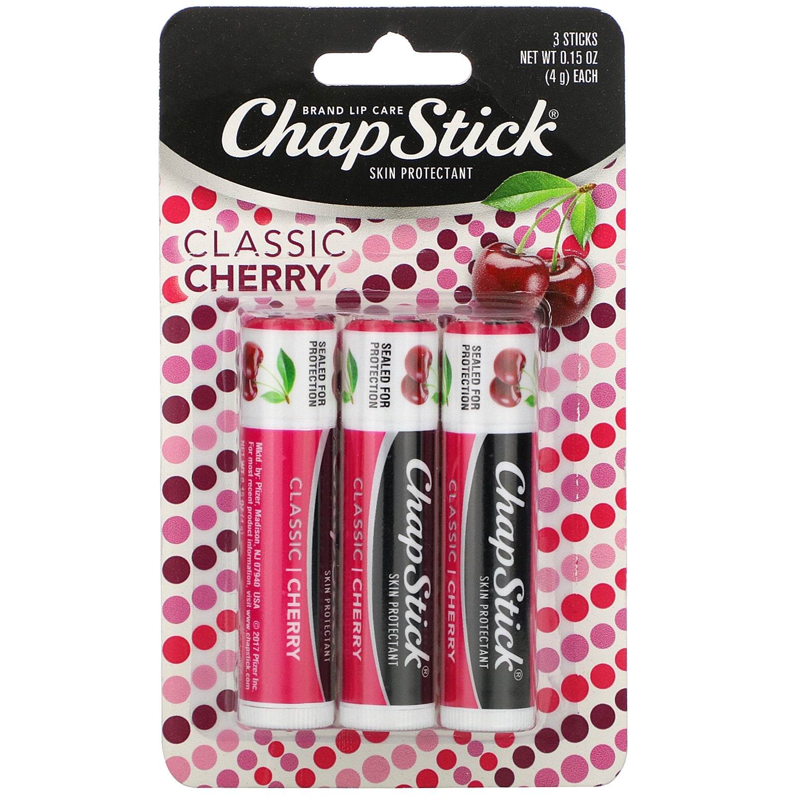 Chapstick, Lip Care Skin Protectant, Classic Cherry, 3 Sticks, 0.15 oz (4 g) Each