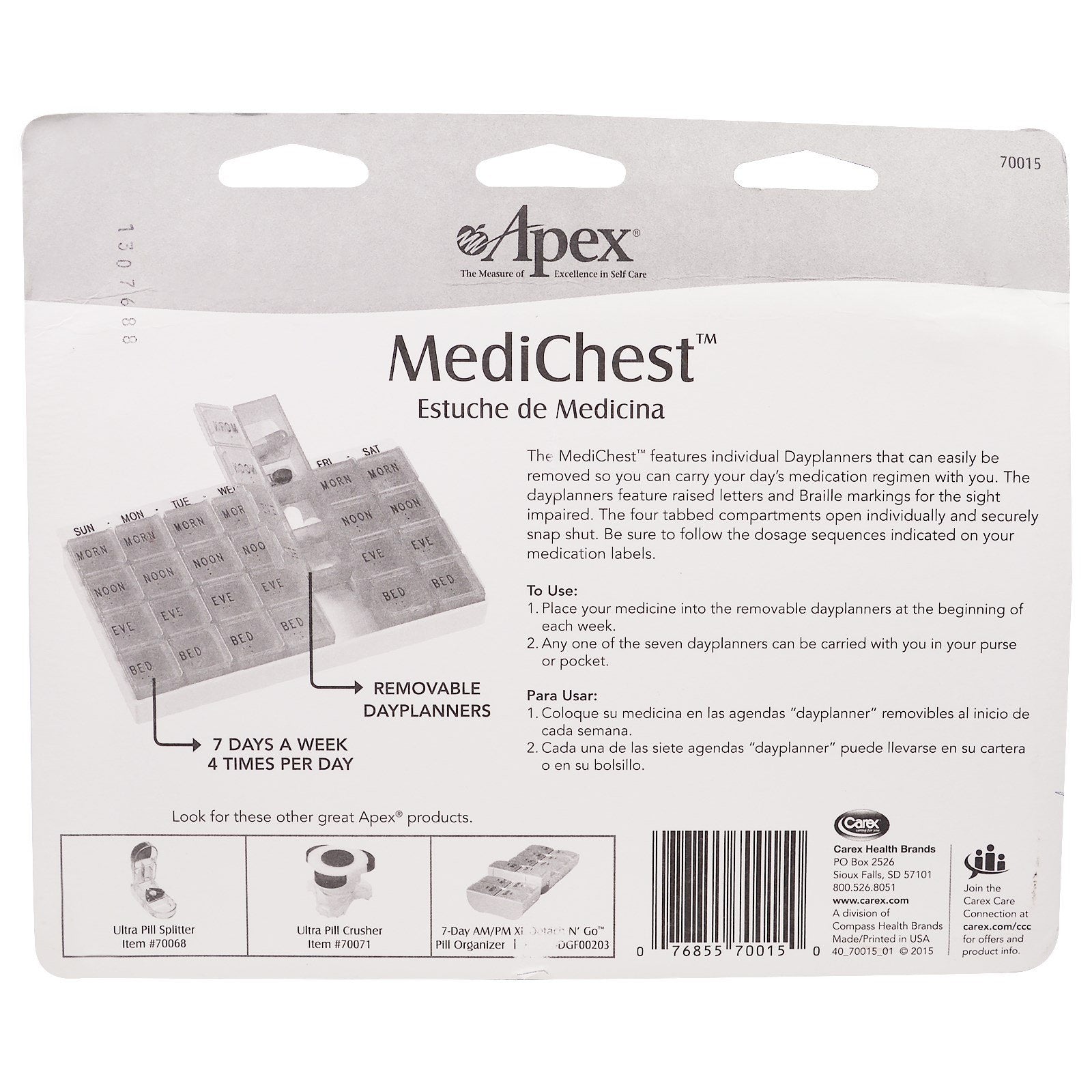 Removable Dayplanner for Each Day The Measure of Excellence in Self Care Tabbed Compartment Door Open Easily and Snap Securely Shut Raised Lettering and Braille Markings Carex Caring For You- Carex Health Brands 7 Days a Week - 4 Times Per Day Removable D